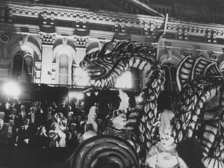 “The crenellated, dragon and bullock-encrusted Gate of Ishtar swings open, and the swarm surges through—not onto the battlement-lined Avenue of Marduk, but upon Canal Street, Royal and Chartres and Bourbon and Dauphine Streets, Rampart and Basin and La Salle Streets, St. Charles Avenue in front of Gallier Hall. They caper and convulse to the accompaniment of tambourines and bass drums and whistles and the chaos of flutes and beggars’ fiddles, and the constant background roar, like that of thousands of beasts, greeting or waving farewell to a royal procession on Shrove Tuesday—either Rex, the most egalitarian and revisionist of monarchs, or Comus, most aristocratic and venerable, whose parade passes with a swiftness that only briefly gilds the lengthening shadows of Carnival Night.”