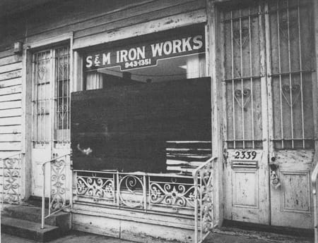 “The S&M Iron Woks: more lewd speculation must arise—scenes from Caravaggio or Pauline Raege illuminated by the light of leering 8th Warders with arc-lights and acetylene torches. But the facade despite its bars is a dead giveaway: business as usual.”