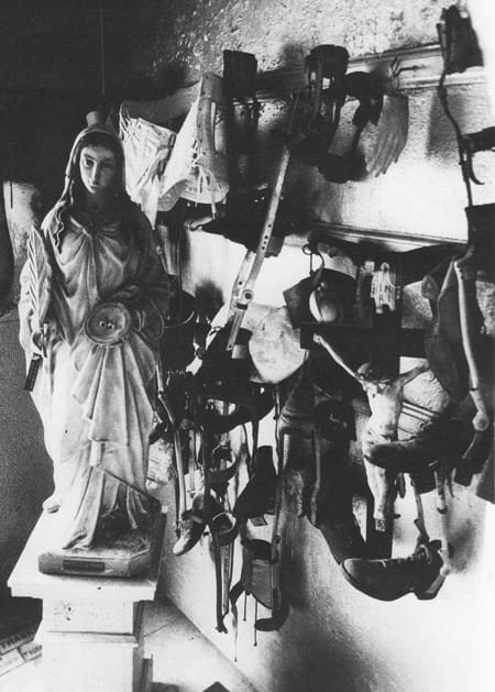 “A view of the court of miracles at the Campo Santo Shrine of St. Roch—an old-world scene of devotion, fervor, immortelles and plaster casts of newly-whole physical parts, reminders of physical transience, all of them together in a side room off the altar in the Chapel.”
