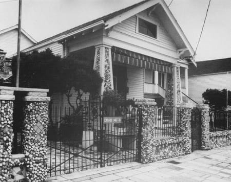 “The Rock House of Louisa Street is an outstanding example of Ninth Ward lily-gilding and architectural fantasy that defies classification—it was the avocation of its stone-worker owner to compete with Gaudi’s Barcelona extravagances on a smaller scale.”