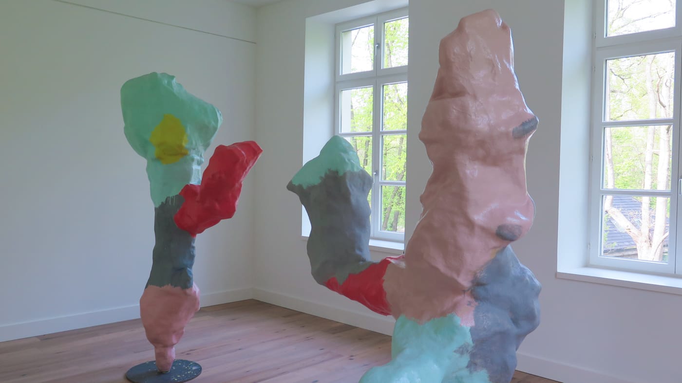 The history of Haus Mödrath plays into the curator’s vision for this show currently on view. A short drive or train ride from Cologne, the history of the property dates back to 1260, when a grain mill here was first documented. Mödrath mill was modified in the beginning of the 19th century to extract pigment from the wood in the surrounding forest, and the original house was erected to shelter mill workers. Today, the mansion is all that remains of Mödrath village, which was destroyed by strip coal mining during the 1960s.