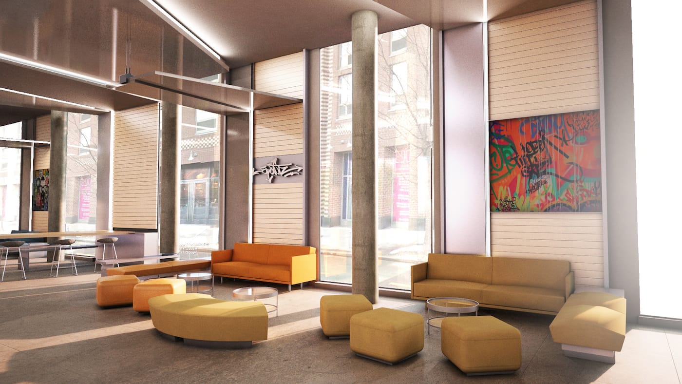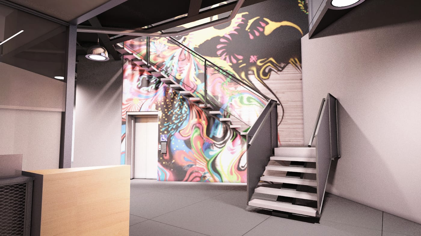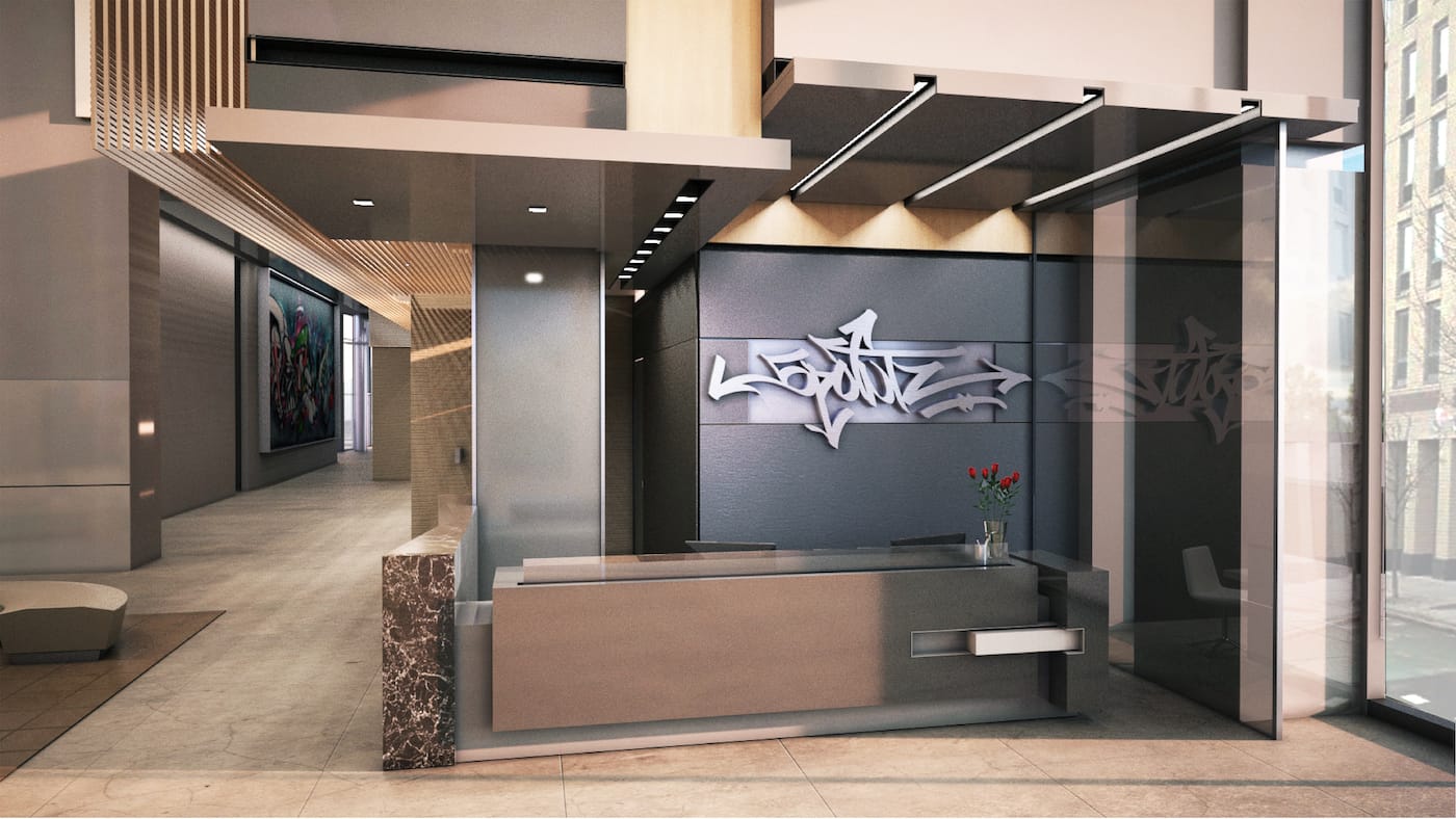 The first renderings of the luxury development show its logo in wildstyle lettering and graffiti-inspired wall art in stairwells and lounges.