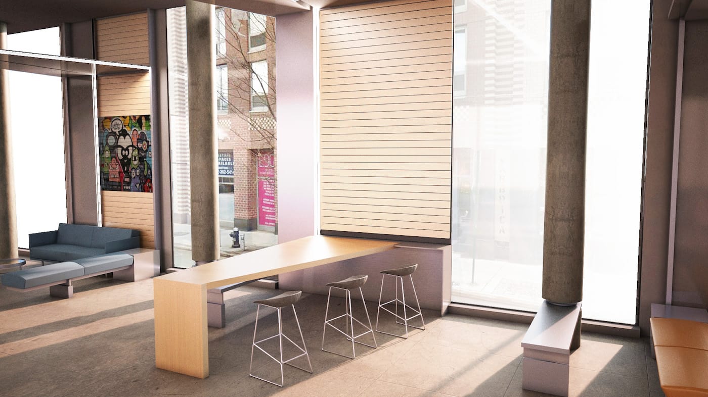 “The client requested that graffiti artwork be incorporated throughout the interiors to reflect back on the history of the 5 Pointz neighborhood,” Mojo Stumer said in a statement.