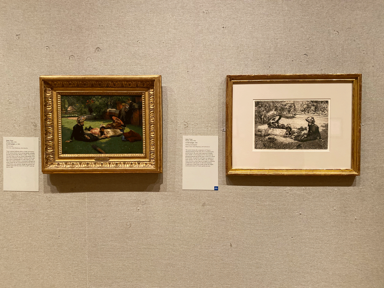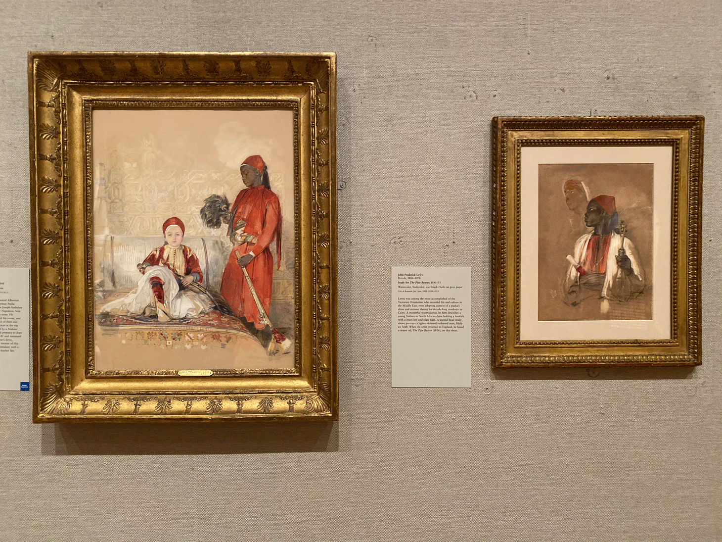 Other highlights in the Department of Drawings and Prints include a pair of namesake works by James Tissot, titled “In Full Sunlight” (1881). One is an etching and drypoint depiction of a group of women and children bathing in the sun of a private garden and the other is an oil on wood version of the same scene from a different perspective. Also worth noting is a group of orientalist paintings by John Fredrick Lewis, a portrait of Marie and an 1814 Gregorian calendar adorned with depictions of European monarchs.