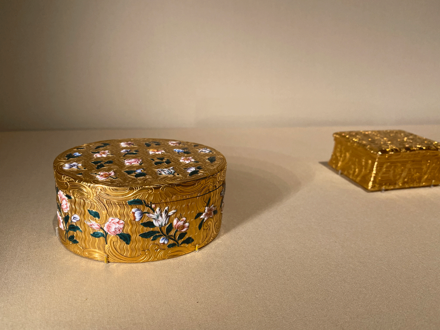 Gallery 545 at the museum is named after the Wrightsmans, who have donated much of the works of French decorative art in the Department of European Sculpture and Decorative Arts. Most notable among the new gifts is a collection of 18th-century snuffboxes (containers for smokeless tobacco that was consumed by sniffing) coated in gold and enamel. The Wrightsmans were known to hold the finest private collection in the United States of French decorative arts from before the French revolution in 1789.