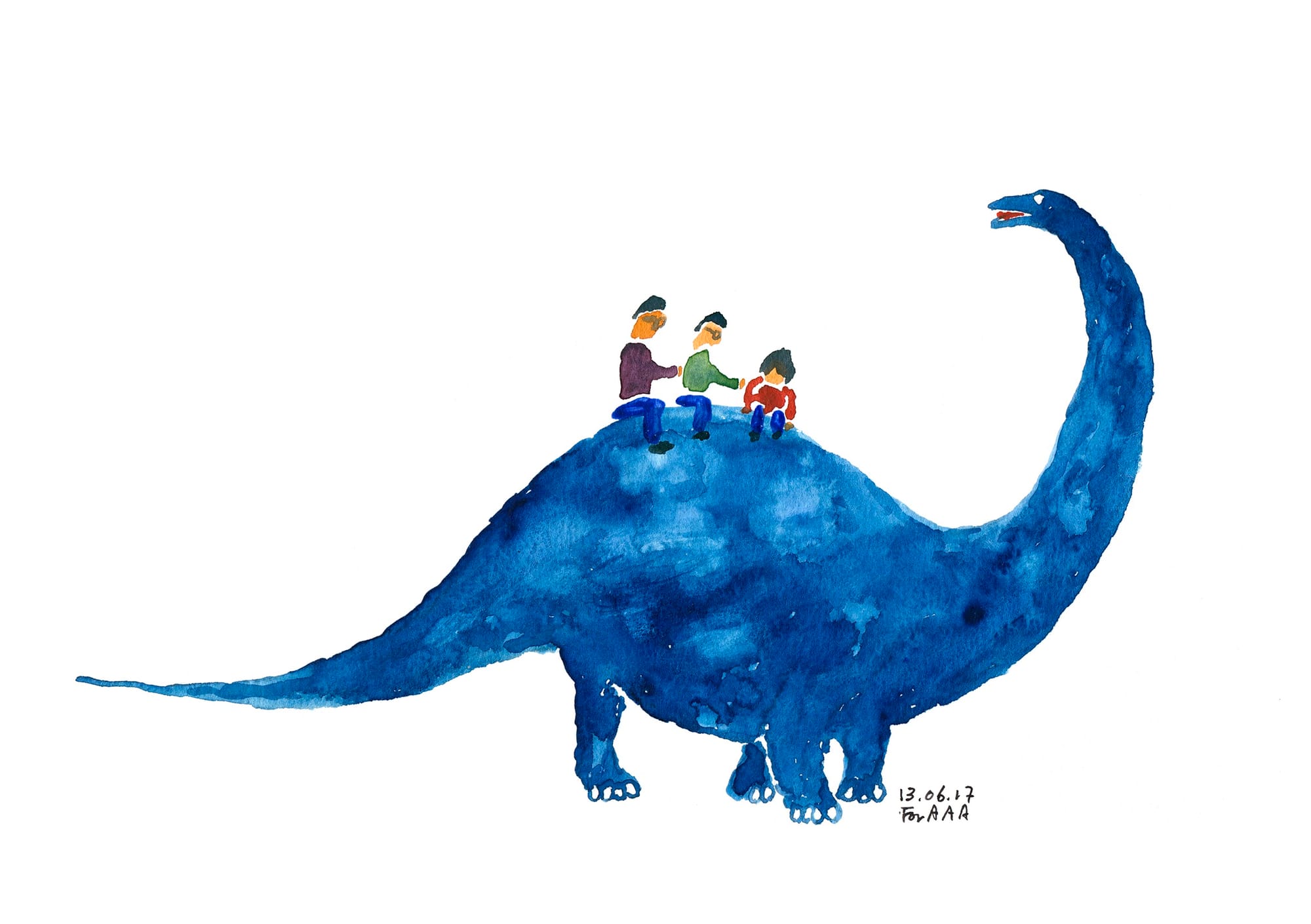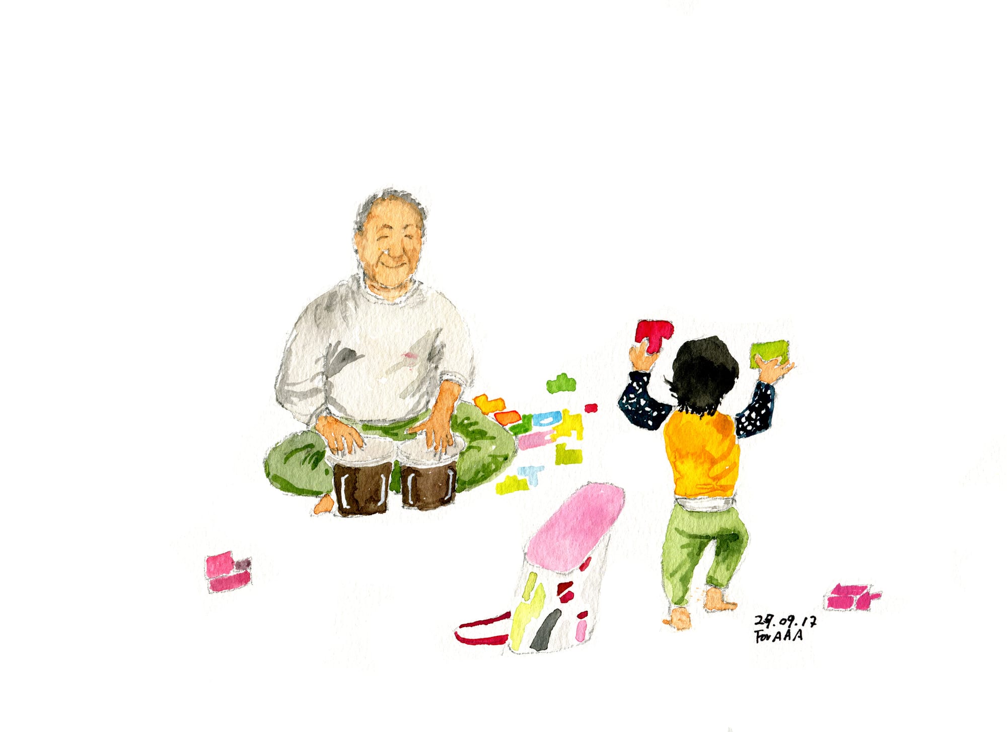 Chan had a natural proclivity and talent for drawing; Marina, for her part, was a writer. To help stop him from falling into a rut, Ji encouraged his father to reconnect with his pastime and post his work on Instagram. The idea didn’t stick until Chan and Marina took a visit to New York following the birth of Ji’s son, Astro: “One evening, my dad wondered what Astro will become when he grows up,” says Ji. “I asked him ‘Why?’ upon which he answered, ‘Because I won’t be around anymore.’” The prospect of posting drawings that Astro and his cousins in Korea, Arthur and Allan, could peruse, was exciting — a way to communicate spatially now, and temporally later, when the kids were grown up. Grandpa Chan began drawing and painting every day, and Drawings for my Grandchildren was born.