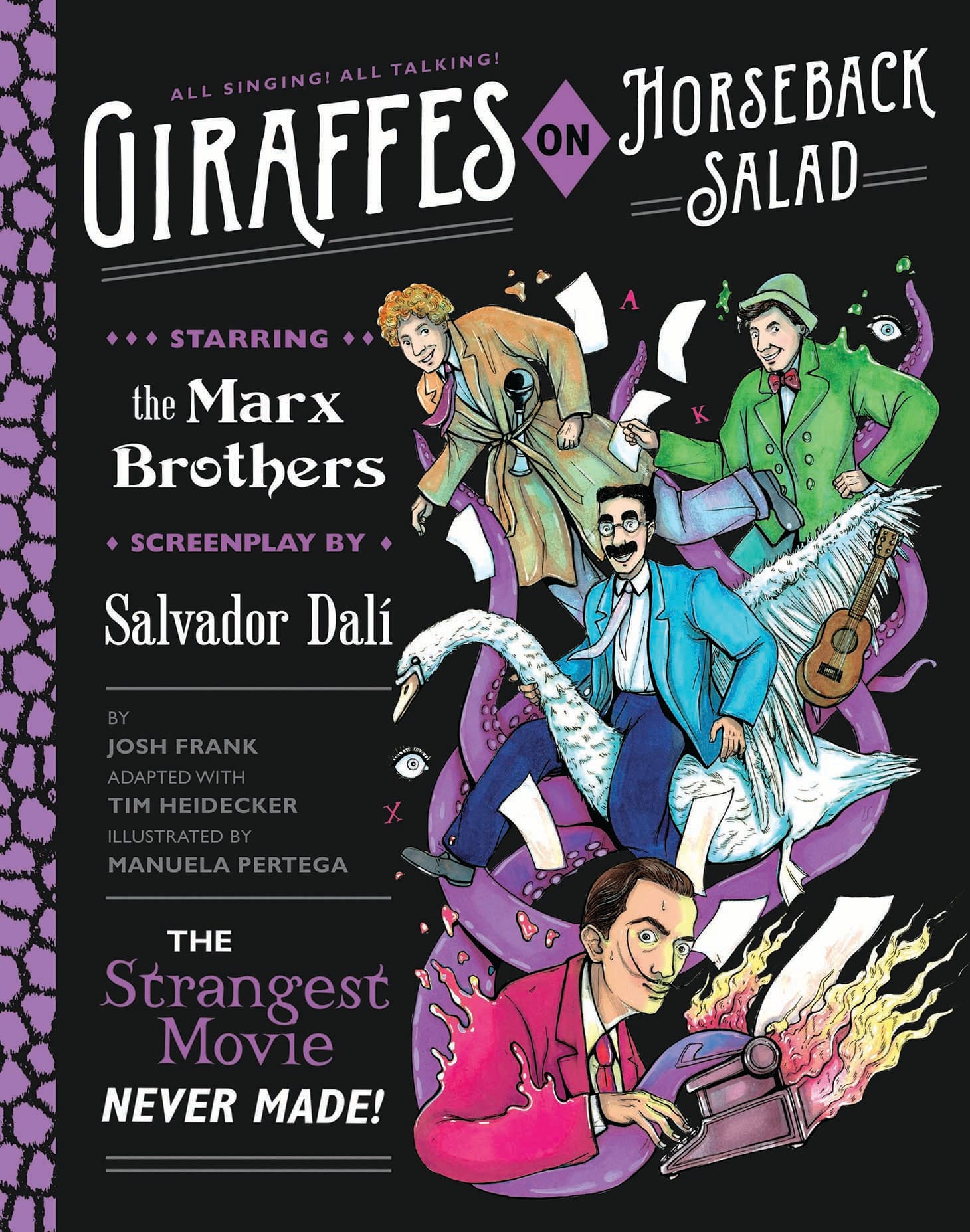 Giraffes on Horseback Salad: Salvador Dali, the Marx Brothers, and the Strangest Movie Never Made by Josh Frank, Tim Heidecker, and Manuela Pertega is published by Quirk Books; First Edition (March 19, 2019) and is available from Amazon and other online retailers.