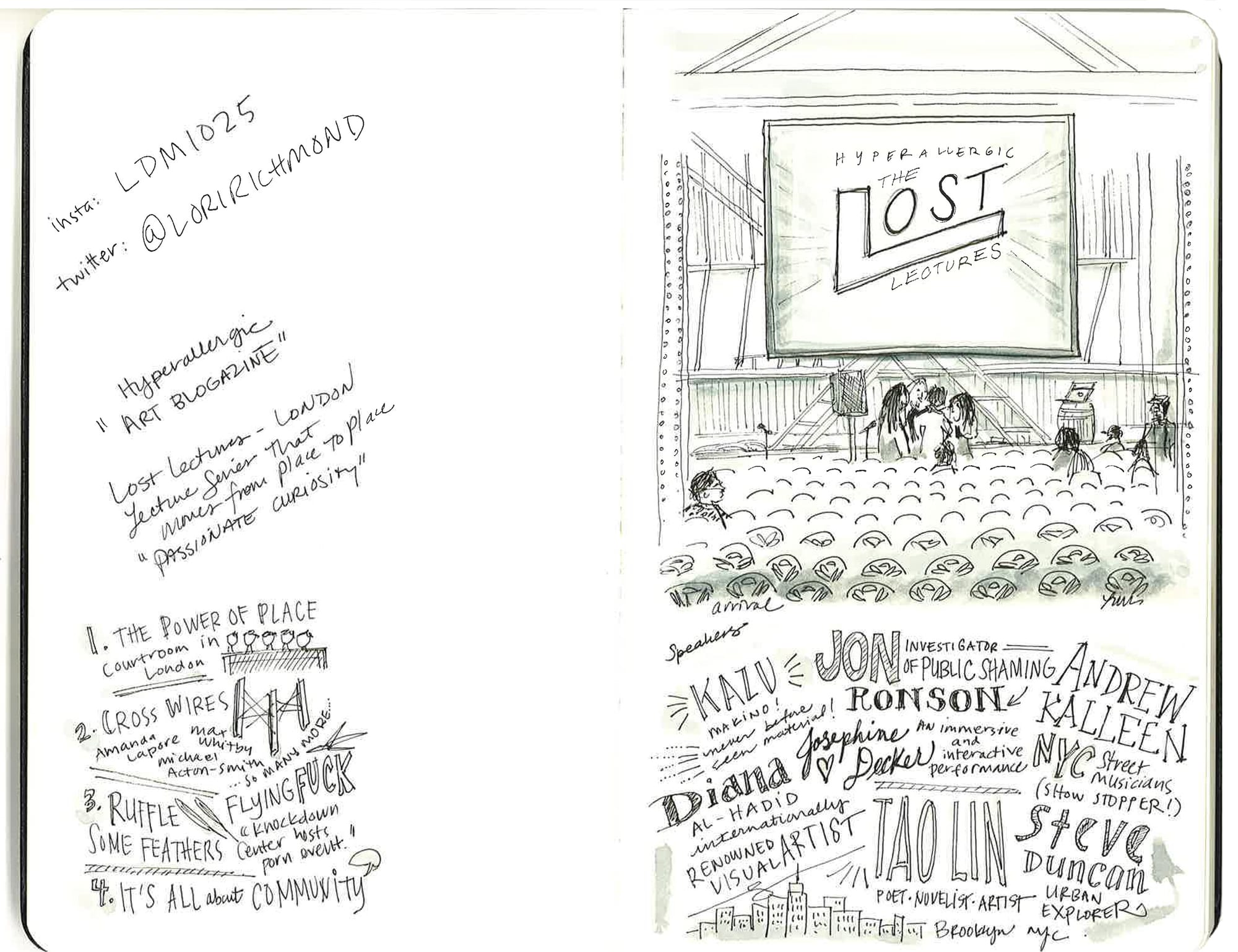 The steering constant of The Lost Lectures NY series is to bring together creative communities spanning the worlds of art, music, literature, film, and more. We were lucky enough to have graphic reporter Lori Richmond attend our Friday night event to document and string together these themes.