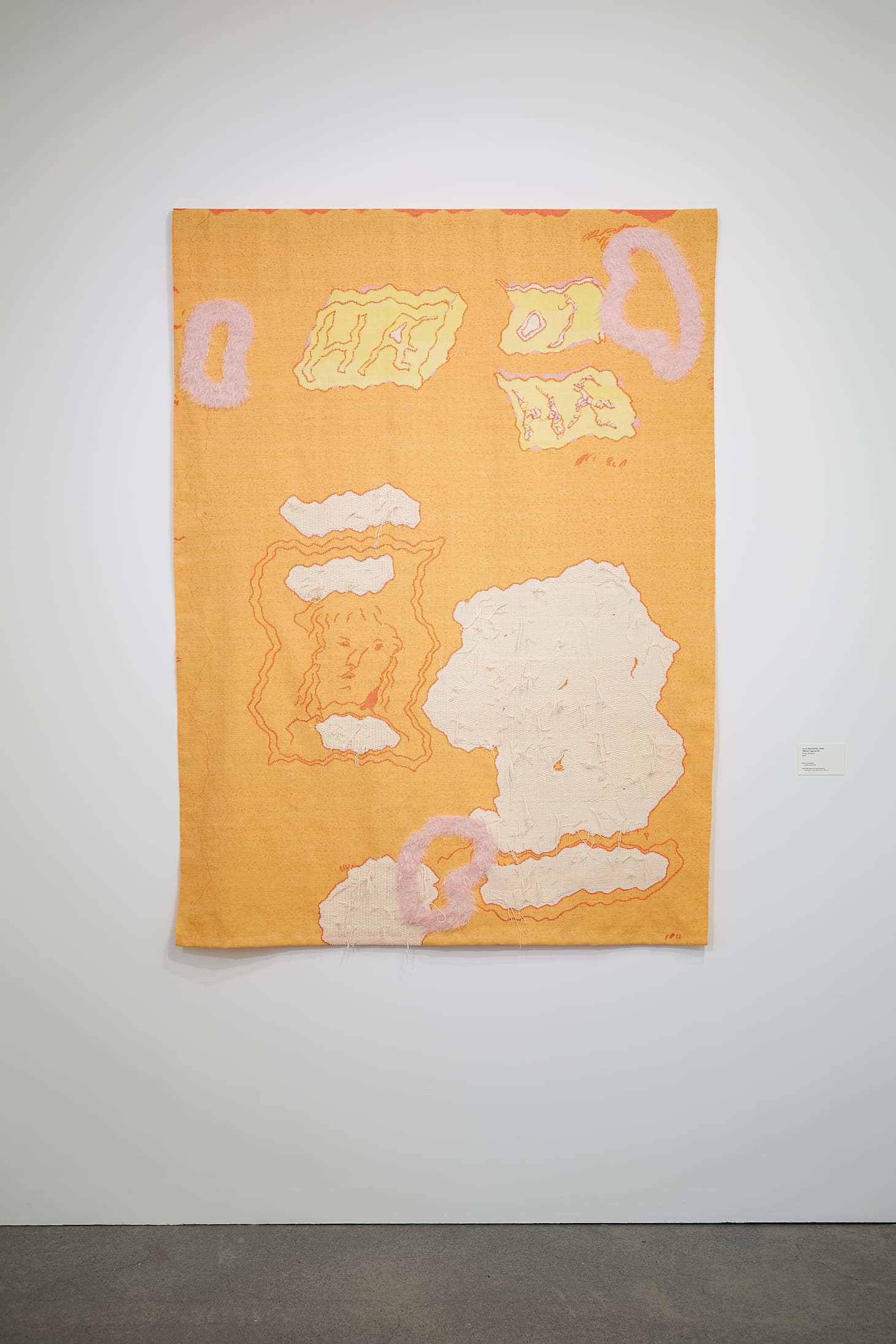Casual line drawings, altered and distorted on the computer, are the sources for Arna Óttarsdóttir’s handwoven tapestries, which are also standouts. With hands, faces, doodles, sometimes bits of language, and multiple colors, each is a thoroughly updated take on Iceland’s centuries-old engagement with textiles. These works are thoughtful and delightful. “Fuzzy Notions” (2021), with circular purple tufts, a quizzical face, and a lumpy, white form makes me swoon.