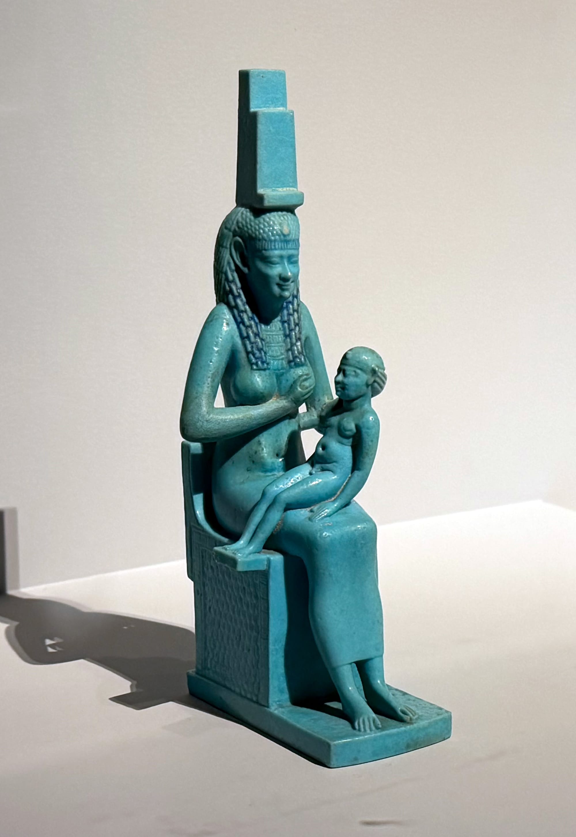 Unknown maker, statuette of Isis with the infant Horus, faience (332–30 BCE)