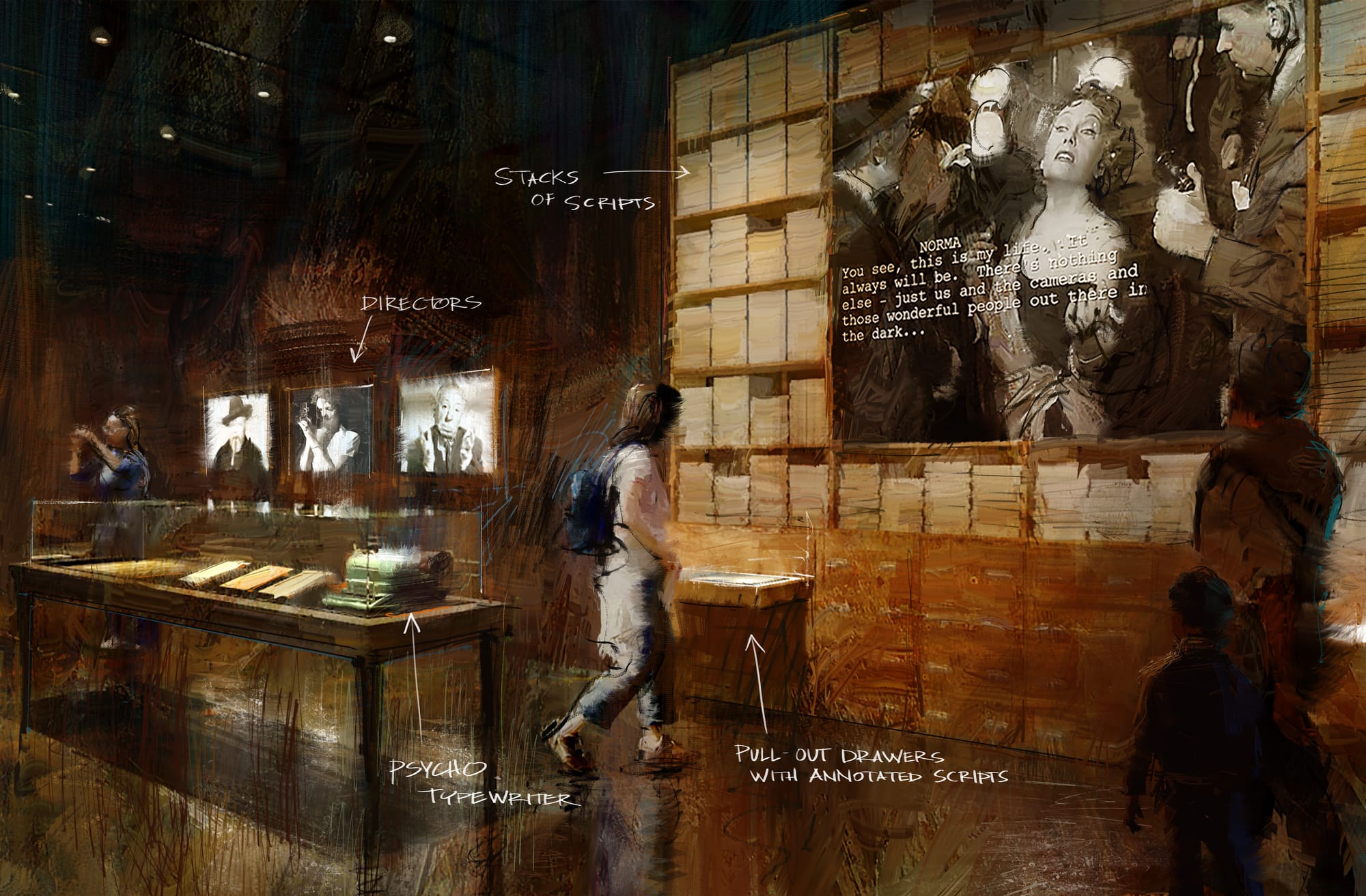 Concept art for the “Studio System” gallery in Where Dreams Are Made: A Journey Inside the Movies (courtesy Academy Museum of Motion Pictures)