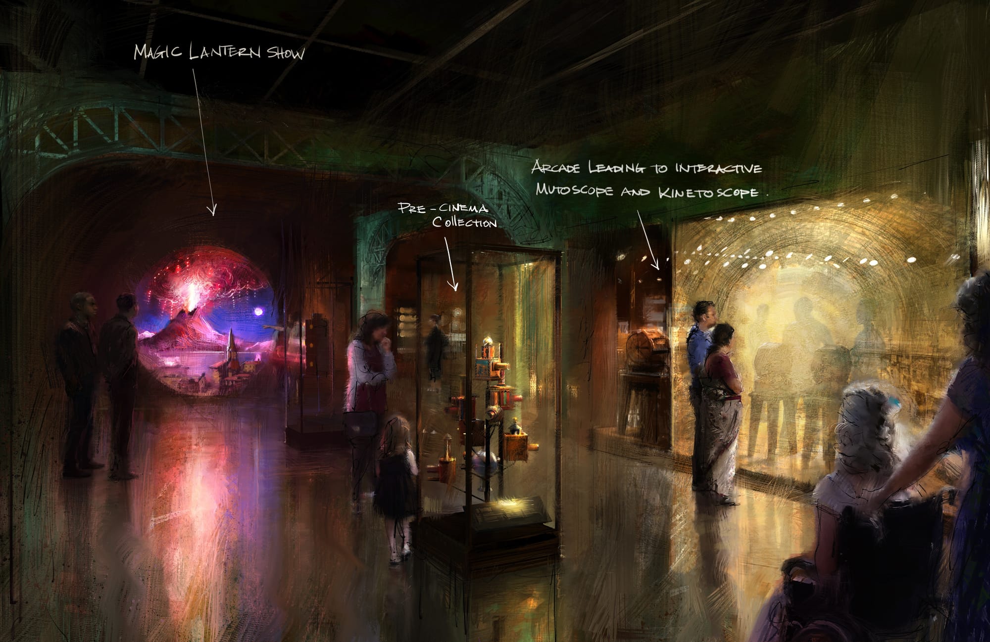 Concept art for the “Magic and Motion” gallery in Where Dreams Are Made: A Journey Inside the Movies (courtesy Academy Museum of Motion Pictures)