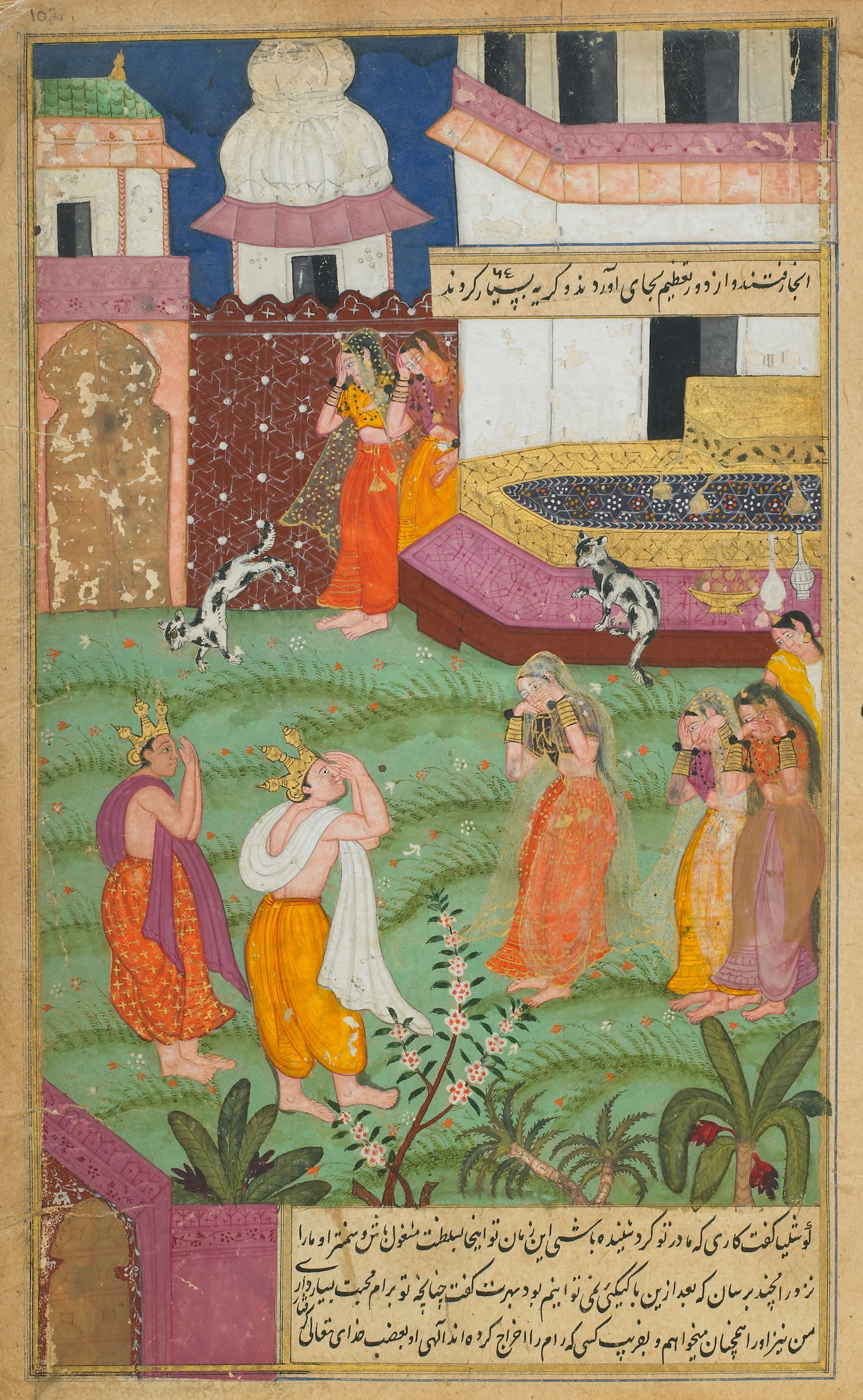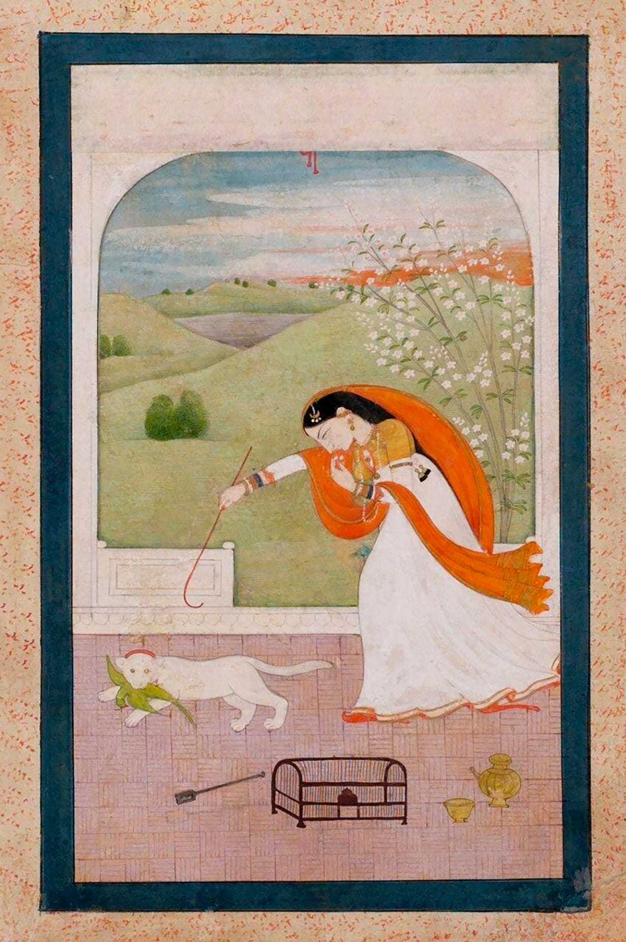 Reproduced in the book are 58 Indian paintings from several museums around the world, illustrating our affection for cats — from royalty to courtesans to mystics, the cat's company has been enjoyed across classes. Interestingly, a few Mughal representations of Biblical themes feature cats, yet they’re absent in most European works. Goswamy observes this as a possible attempt by the Indian painters to make the settings more naturalistic.