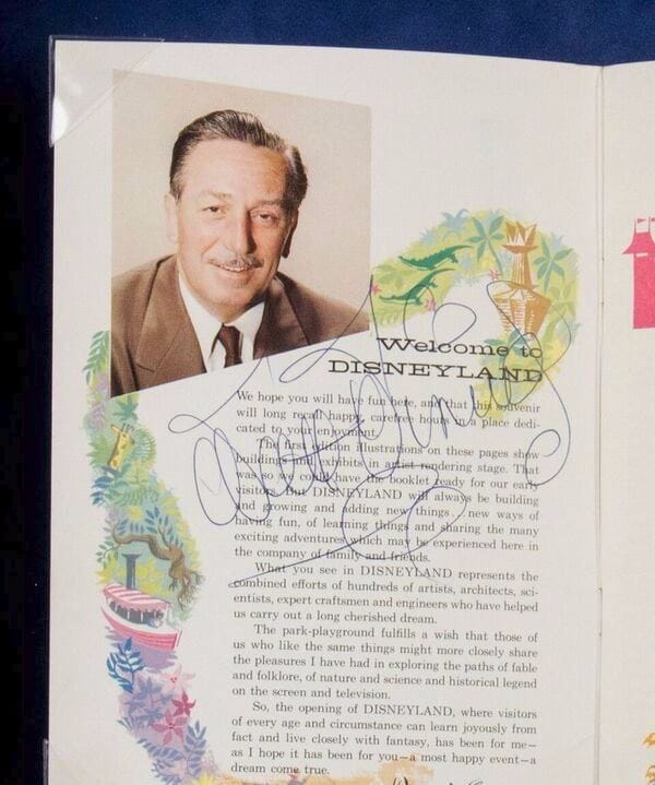 Fans of the parks can enjoy treasures from their inception and making, including original studio file copy of Walt Disney’s first pitch documents for financing Disneyland park. There is a hand-colored map that constitutes one of the first renderings of the park, and the prospectus is valued between $10,000 and $20,000, due to its cache and rarity. A ton of other original promotional materials are included in the auction, some dating back to the 1950s.
