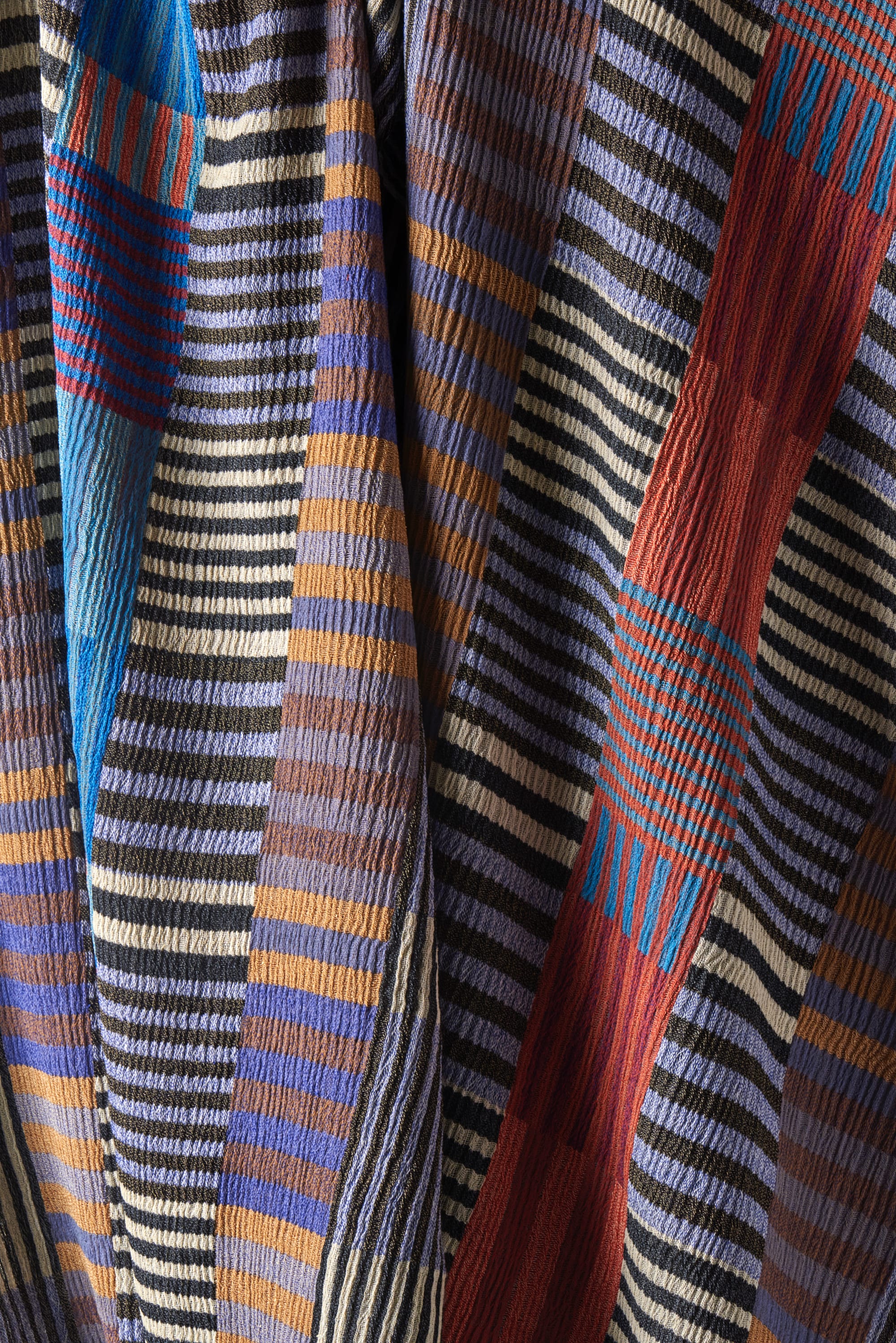 Sudō’s textiles are visually striking. Since she was a student, the designer has been inspired by visual artists like Magdalena Abakanowicz, whose giant, freestanding sculpted weavings showed Sudō “that textiles could be used as a medium of artistic expression,” she told Hyperallergic in a recent email. Today, Sudō’s work appears in major collections around the world, including the Museum of Modern Art in New York and the Victoria & Albert Museum in London. But beyond their rich colors and textures, Sudō’s textiles are also meant to last.