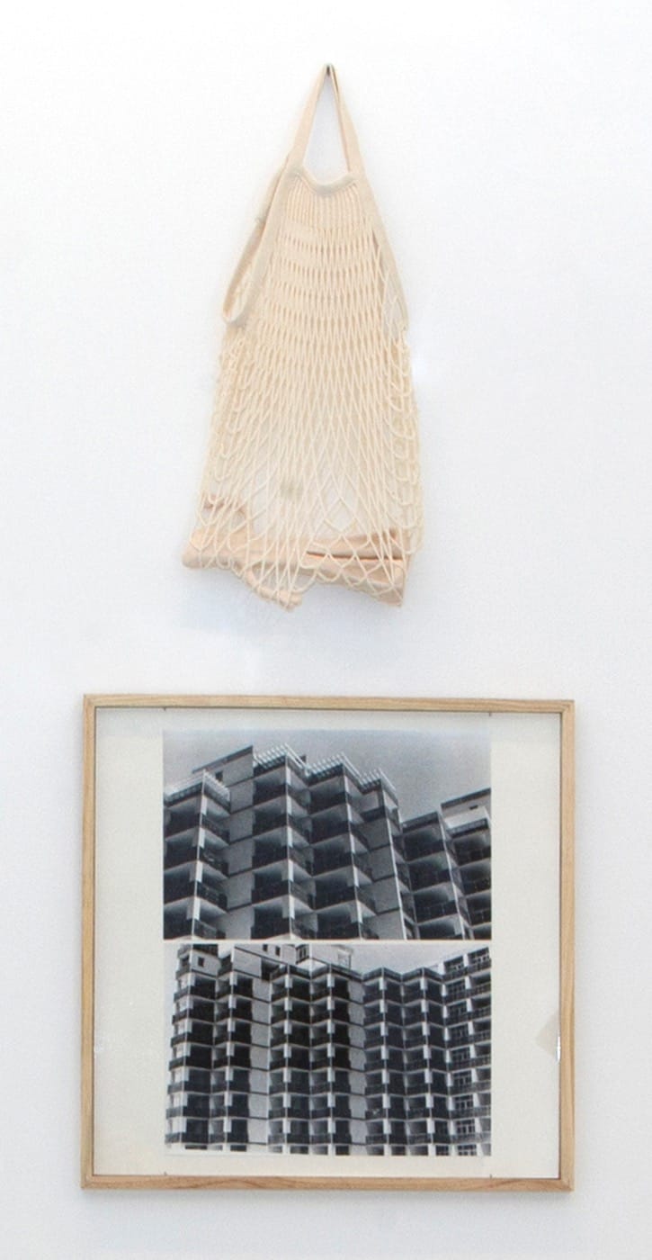 Born of a Puerto Rican architect mother and Kuwaiti architect father in 1985, Farid obtained a Master in Visual Studies degree from M.I.T. and one in museum studies from the Museum of Contemporary Art, Barcelona. So, her cerebral chops are unimpeachable. But I also really like the way she boldly mixes in narcissism-free autobiographical material here — like the white, cotton net-bag embracing a pale ceramic reproduction of Gumby, one of the artist’s childhood toys. This is hung over a photograph of where she lived in Kuwait during her childhood. The addition of such personal detail woven seamlessly into the installation sets up a situation in which the mind vacillates between state narratives based on objective records and self-portraiture. Such vacillation opens up her life to unexpected, and novel creative potencies and territories.