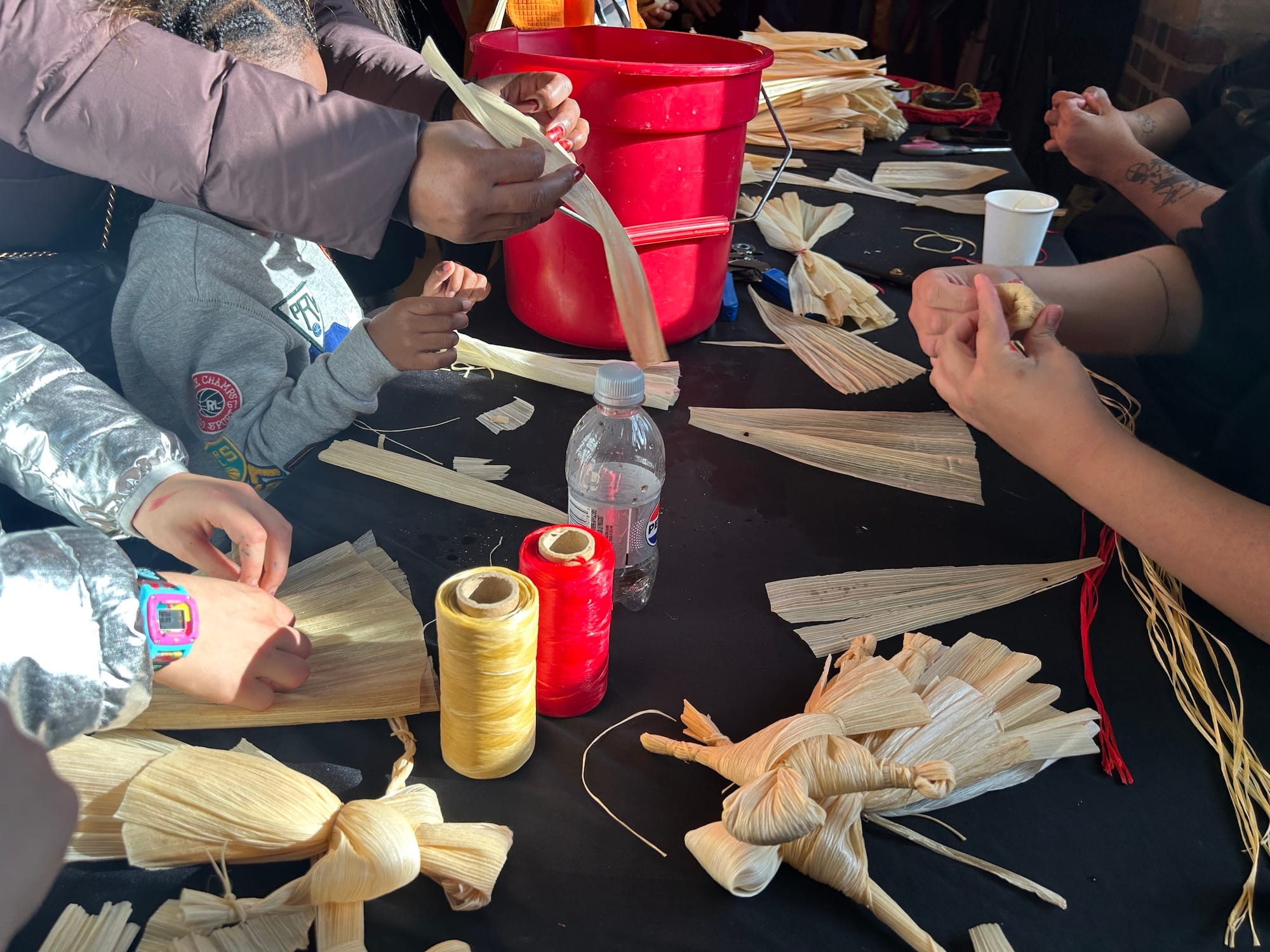 Throughout the weekend, Brooklyn residents were treated to performances by the Red Blanket Singers, a Southern-style Native American drum and dance group made up of Nanticoke, Lenape, Haliwa-Saponi, and Mohawk tribal members, who carried out traditional dances originating from communities across the continent. At a table in another corner, children learned how to make dolls out of dried corn husks and twine while their parents shopped for handmade holiday gifts crafted from raw hide, grapevines, deer bone, wampum, turquoise, and other natural elements.