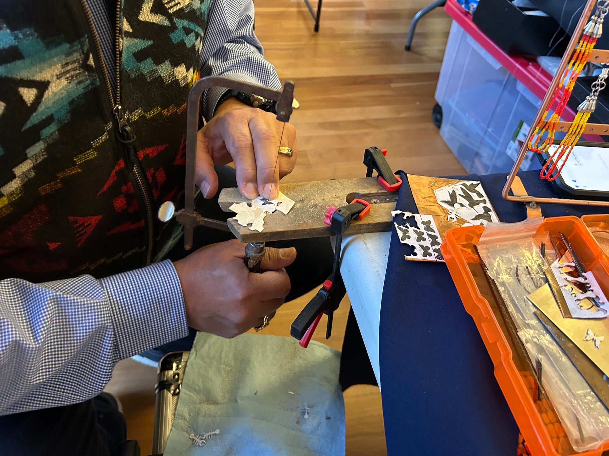 Many of the artisans who had congregated at the Picnic House have longstanding relations and were glad for the opportunity to catch up with old friends and family, who they will often see when they gather at powwows, where they typically sell their goods.