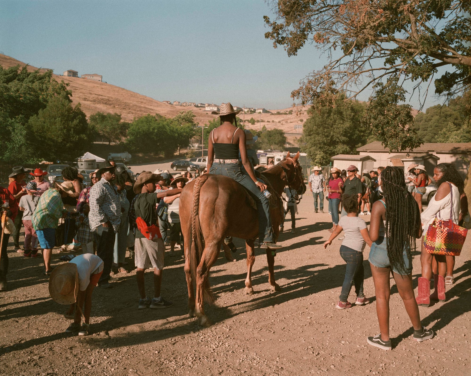 El Salvador-born, San Francisco-based Hasbun is a thoughtful and perceptive observer. She photographed the BPIR’s annual gathering at Rowell Ranch Rodeo Park outside of Oakland, California, for more than a decade. Her sensitive portraits of attendees with their horses, regalia, and equipment capture the event’s special atmosphere of care and pride. The book is a thoughtful tribute to generations of BPIR participants, and to the ways that the rodeo has helped validate and redefine the largely untold story of Black cowboys and cowgirls in the American West.