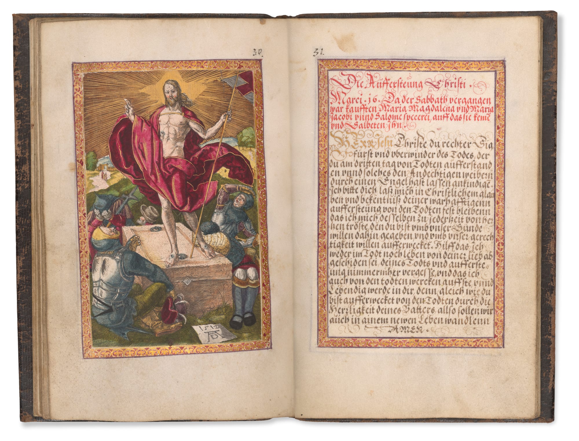 The visual variety found in the book covers reflects the vastness of the Empire, which at various points encompassed modern-day Germany, Switzerland, Austria, and the Czech Republic, along with parts of Poland, Belgium, the Netherlands, and northern Italy. Hamburger and O’Driscoll propose that the Empire’s decentralized nature helped its book arts evolve, and pushed the eventual development of the printing press in its lands. Before that happened, though, it fostered a rich book culture that’s worth revisiting today.