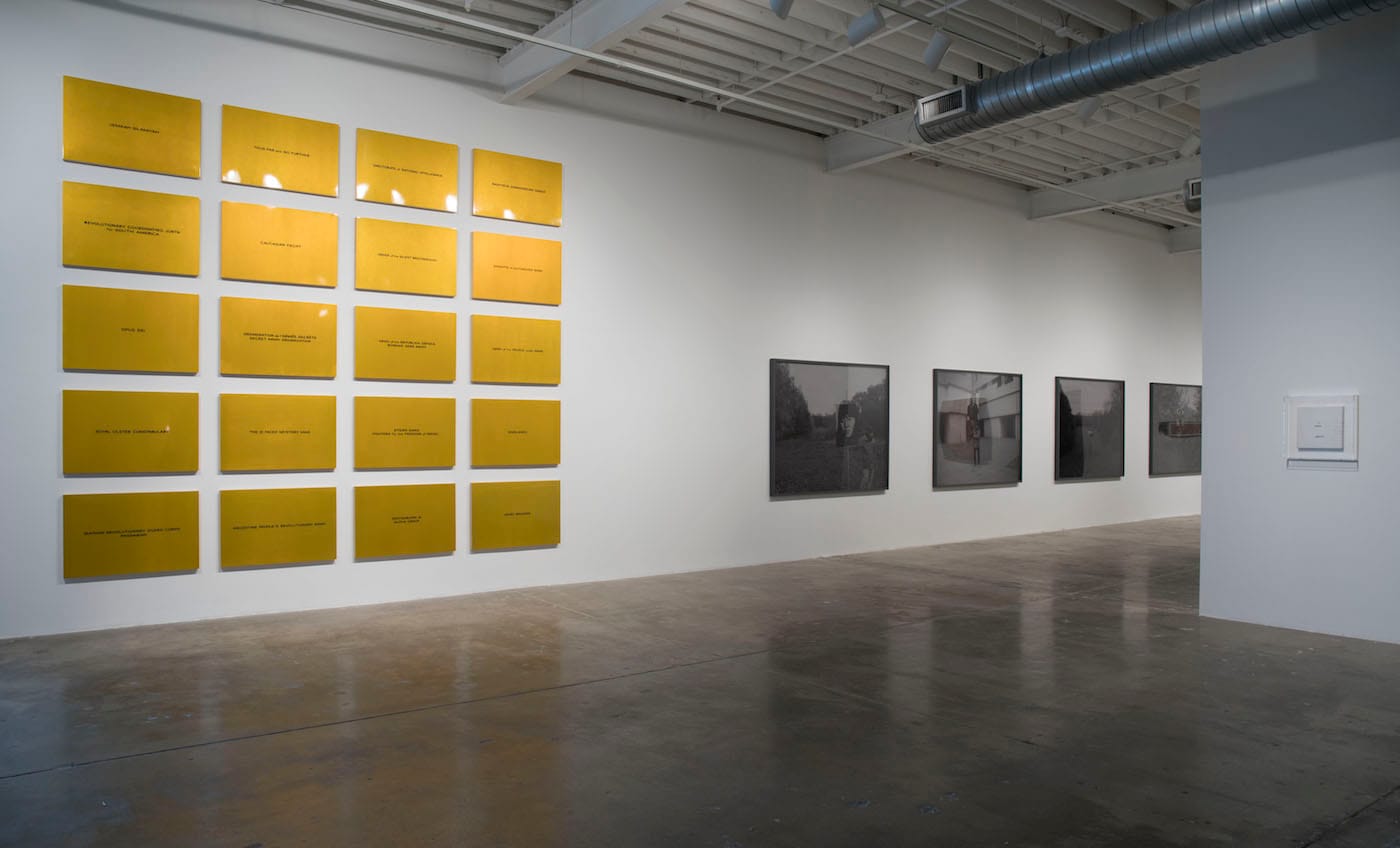No black / No white (no and) explores that liminality: there’s no black or white here, no transparent messaging. Though many of the works allude to sociopolitical realities and global histories, they’re presented less as didactic truths than as stories to intuit. I was struck by Martinez’s Divine Violence (2007), a series of gold lacquered panels adorned with the names of various political organizations, their aims sometimes contradictory: the Caucasian Front, the Argentine People’s Revolutionary Army, the Stern Gang – Fighters for the Freedom of Israel. Presented together, the organizations feel like an innocuous laundry list, their goals inconsequential. According to a description of the piece, the title references Walter Benjamin’s term for violence of pure means for knowable ends — prescribed violence. The distance afforded by their presentation renders them simple enumerations of atrocities, for which justification is meaningless. They almost don’t feel real.