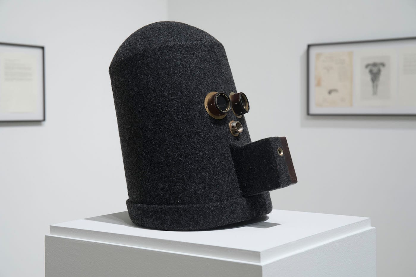 There’s a similar theme in Juan Carlos Osorno’s Fracasos necesarios (Necessary Failures) (2017), an installation featuring drawings and descriptions of failed, bizarre inventions. Osorno has re-created Ronald Mayer’s isolation helmet, a hybrid of gas mask and knight’s armor crafted in 1926 and meant to block out sound. Per an accompanying text by Osorno, the helmet never sold. Mayer became an alcoholic, dying after passing out and hitting his head on a sink. It’s ironic that his invention could’ve saved him; stranger still that there is an isolation helmet being designed today. None of the inventions seem real; or, rather, they feel hyper-real, truthful precisely because of their distinctly human absurdity.