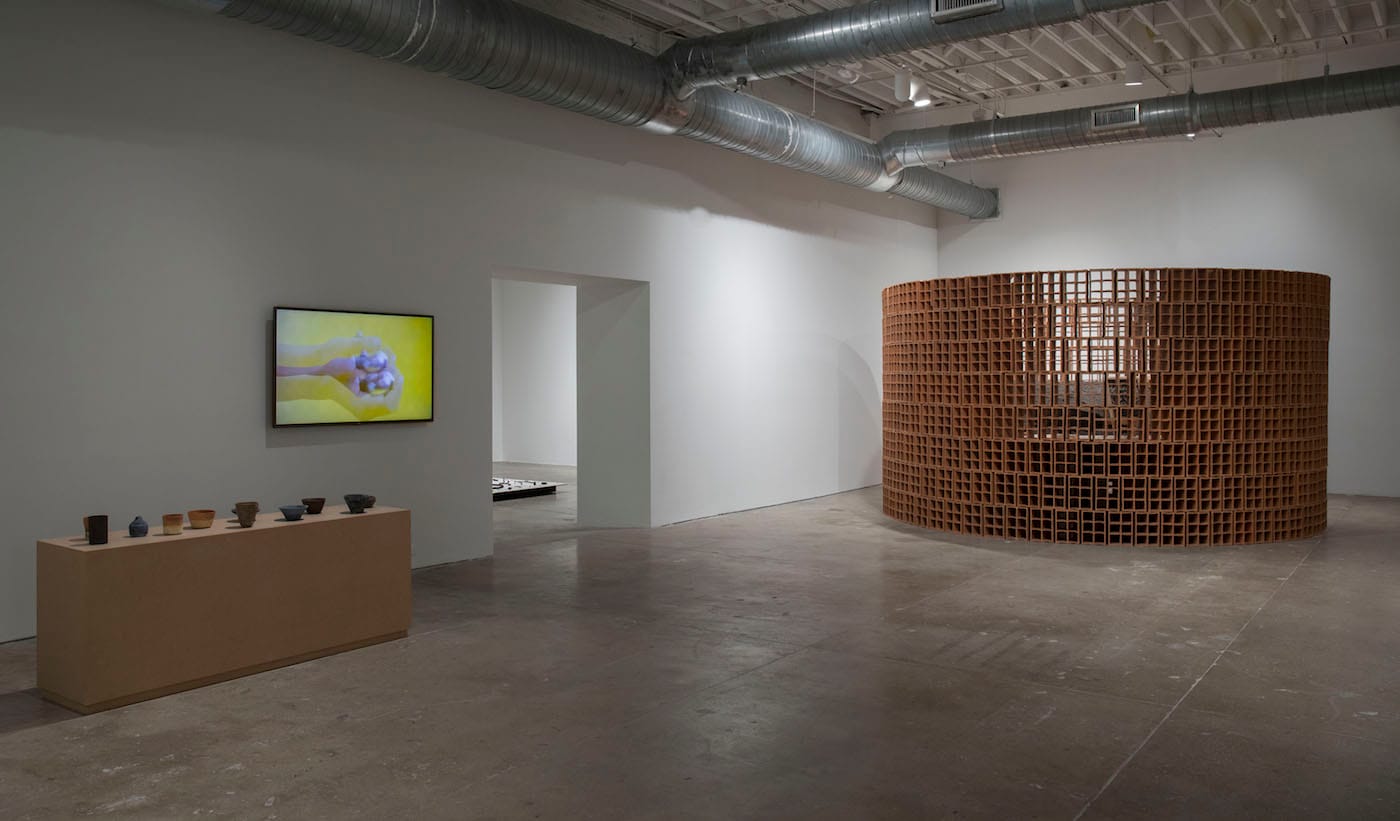 Another, equally beautiful video illustrates a gradual, meditative process, albeit one more benign: in Alana Iturralde’s Baoding Balls, a hand rotates the titular objects in its palm, clinking them together. Placed next to her ceramic pottery and embroidered works, Baoding Balls alludes to the intuitive, calming aspects of a physical practice. Watching the scene, you may recall your own sense of calm. After sorting through inferred, suggestive stories, one must resign oneself to one’s own interpretation, to one’s particular lens. Iturralde’s work is a kind of palate-cleanser: there’s no grey area to glean, no complex story to tell, except perhaps one’s own.