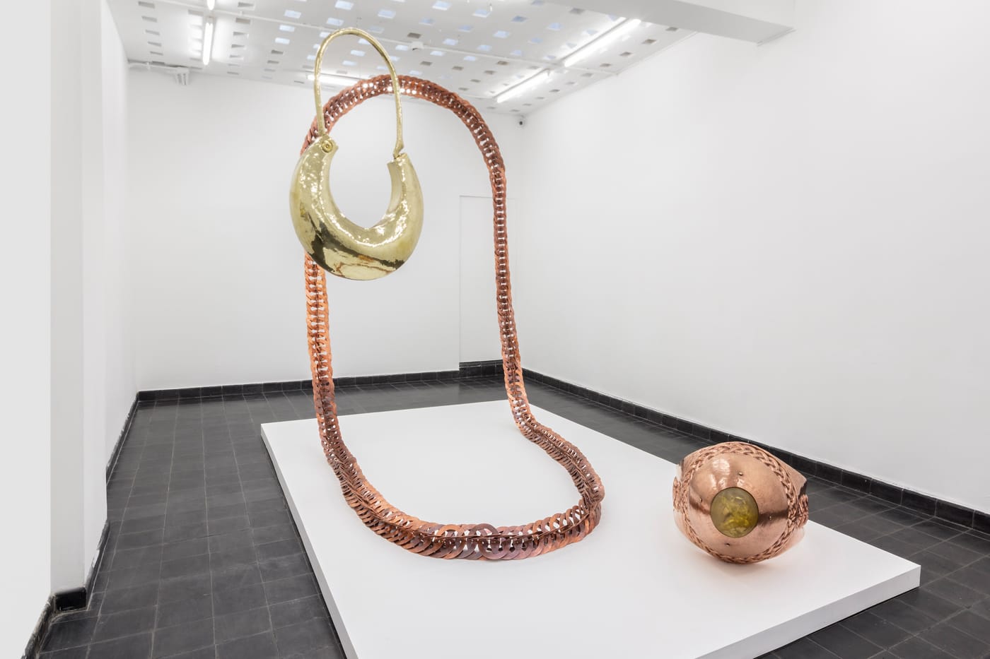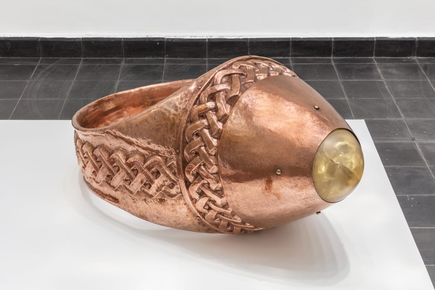 In her practice, Pellicer used traditional copper jewelry techniques from Santa Clara del Cobre in the Mexican state of Michoacan. She makes them contemporary by playing with scale and utilitarianism. Artists who are so identified with a regional style often have trouble breaking free from city and state borders; still, there’s an idealism in Pellicer’s work that ties her to the sociopolitical situation in Mexico and tethers her to tradition, for better or worse.