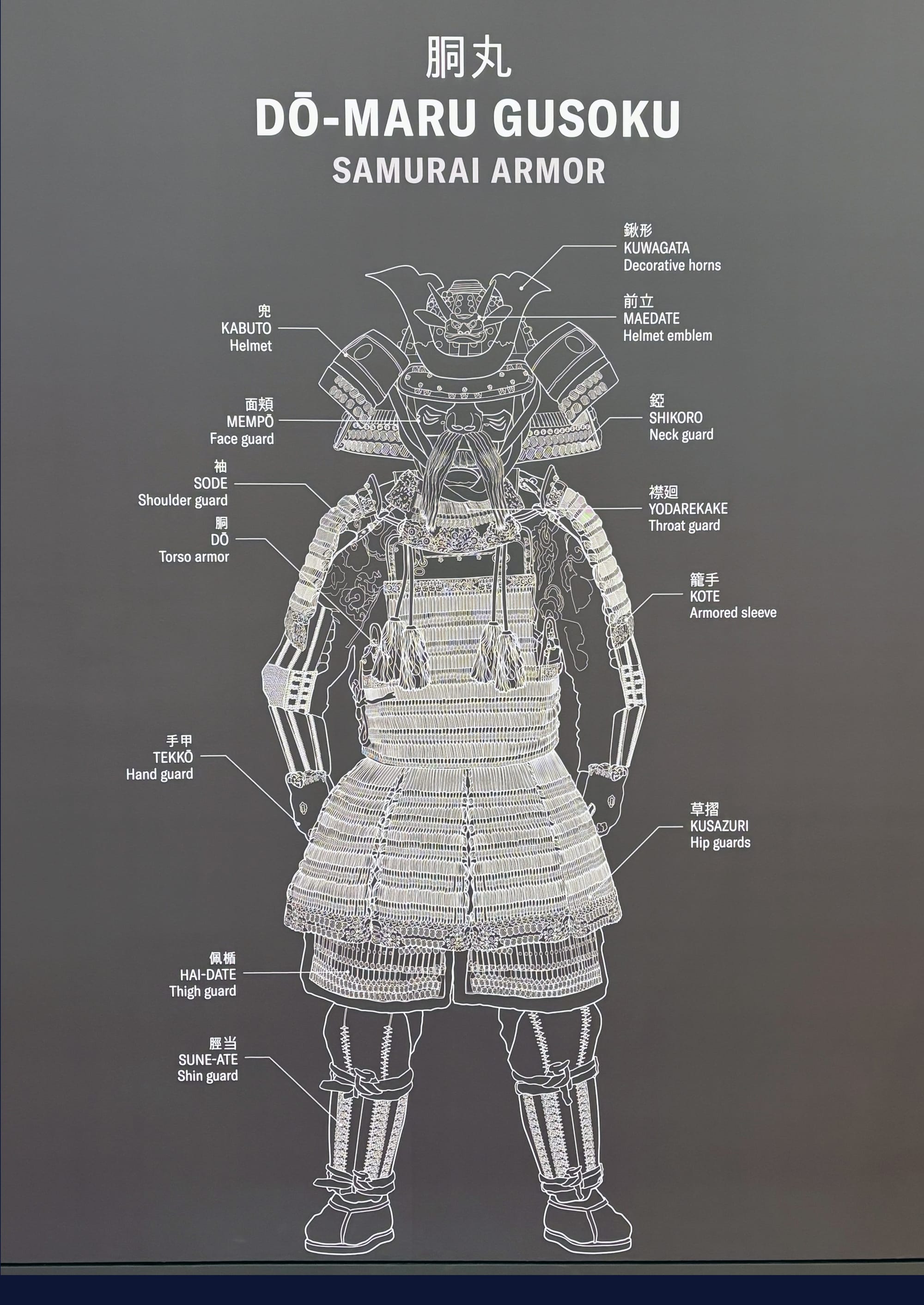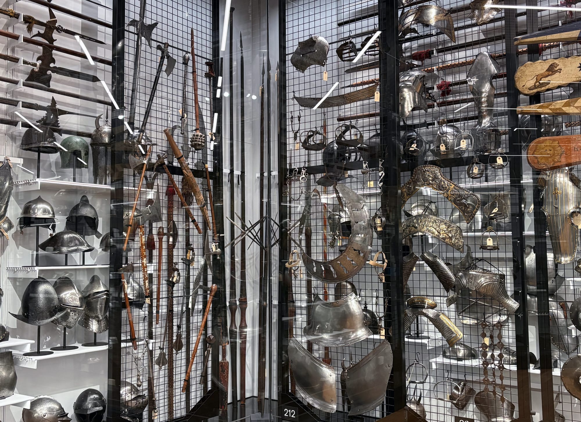 Helpful interactive digital displays allow viewers to explore the labels and items within large glass display cases. They can even peruse the open storage collections that are off view due to space restrictions. Wall diagrams helpfully label suits of armor like the Dō-maru gusoku (samurai armor) and traditional European armor from the Middle Ages. While the gallery walls are packed to the hilt with items and weapons, this lends a sense of cohesion and continuity throughout.