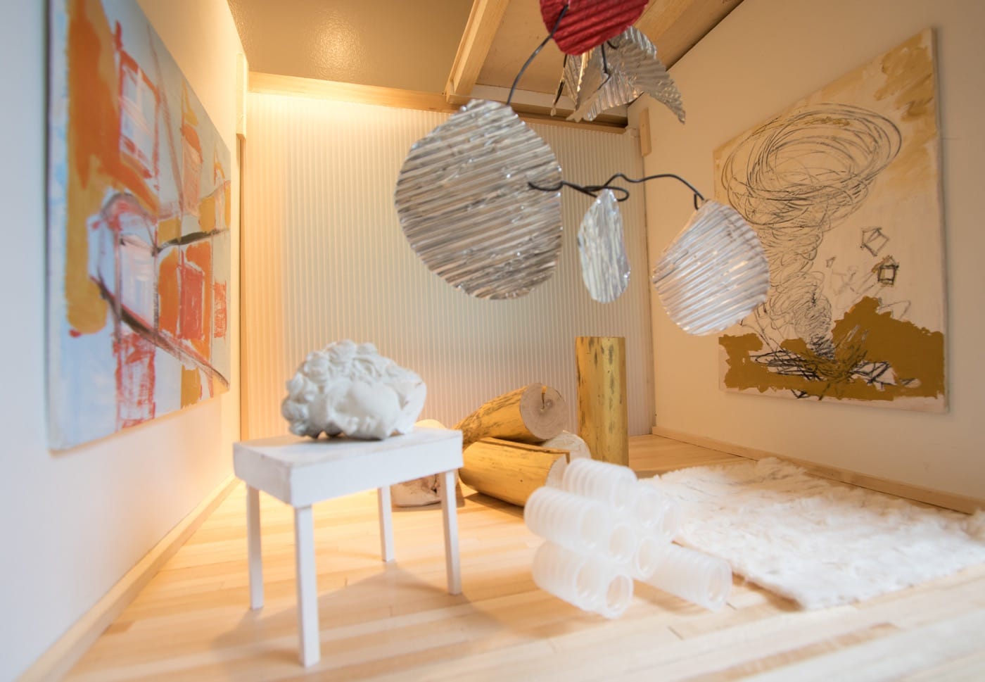 Neckers is an artist from the tiny town of Eden, Vermont (population 1,323). He got some national attention in 2011 when his sculpture “Rocket” (2011) was stolen while on display at Helen Day’s Exposed annual outdoor sculpture exhibition. Since then, he opened the Vermont International Museum of Contemporary Art + Design, a four-by-four-feet gallery, he writes, “at a secret location” in Vermont that became, in Neckers’s words, “ a destination for sophisticated art travelers.” (Neckers can be a bit of a character.) Motivated by a desire to expand his audience, Neckers purchased “a dilapidated vintage camper off of Craigslist for $500” and spent a year turning it into the traveling Mobile Museum. He spent another two years creating hundreds of miniature art pieces for the Mobile Museum’s various galleries. The museum debuted at City Hall Park in Burlington, Vermont in August 2017, and since then has popped up at various sites around the state. The museum will be open to visitors at the South End Art Hop in Burlington, Vermont this weekend.