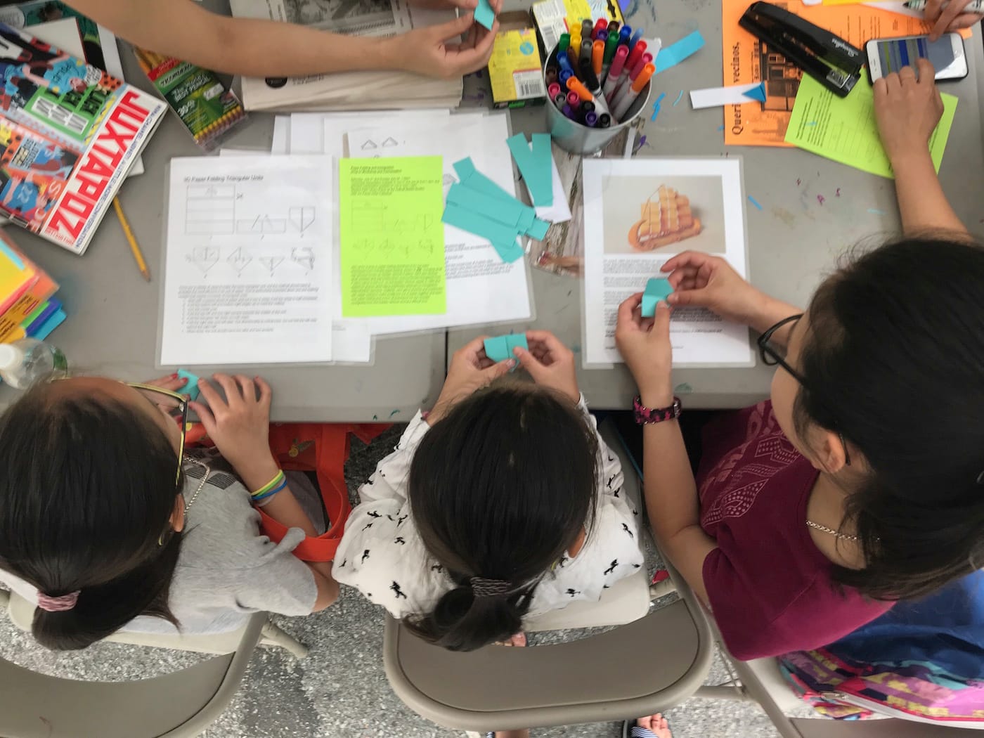 On a recent Saturday afternoon, eight children, a parent, and Liu focused on folding small strips of paper in primary colors. As they folded, they learned about the Golden Venture, a cargo ship that ran aground at Fort Tilden beach in the Rockaways section of Queens in 1993. The ship carried 286 undocumented Chinese immigrants who were taken into custody and indefinitely detained in prisons while they applied for asylum. While they waited, the immigrants turned to paper folding to pass the time. Liu related the story to participants and shared reference material provided by the Museum of Chinese in America. The workshop sought to convey how art making can be an outlet for expression during challenging times.