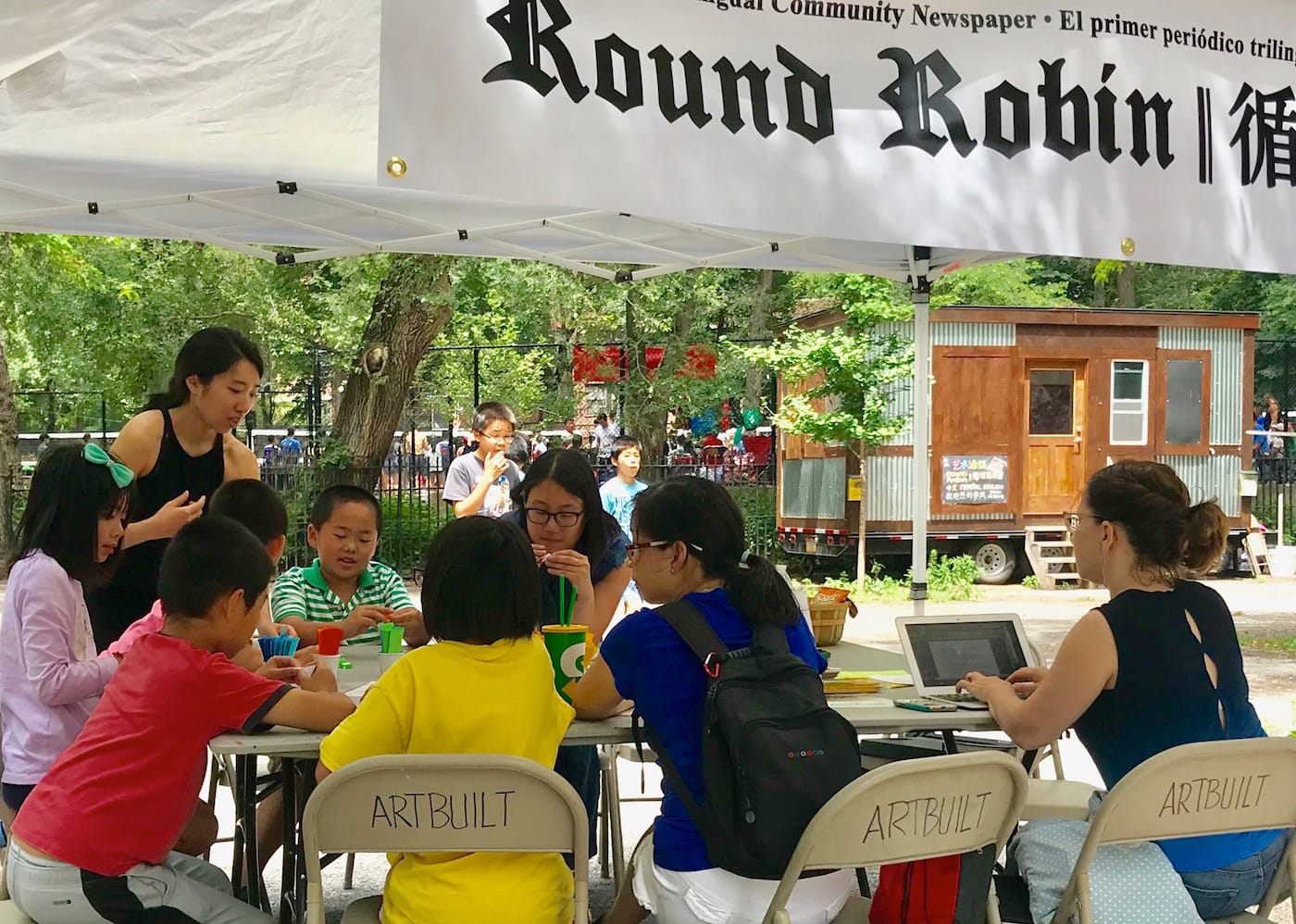 A key focus for the project is to publish a new edition of Round Robin, a trilingual inter-generational community newspaper, the contents of which will be based on the creative activities that take place during Art Parley’s residency this summer with ArtBuilt. Prior workshops last fall, supported by Create Change Fellowship with the Laundromat Project, produced the first edition of Round Robin, a bold, 24-page tabloid-style newspaper that features drawings, memes, poems, photo essays, and stories on current US immigration policies, food, social justice issues, and elements of oral history.