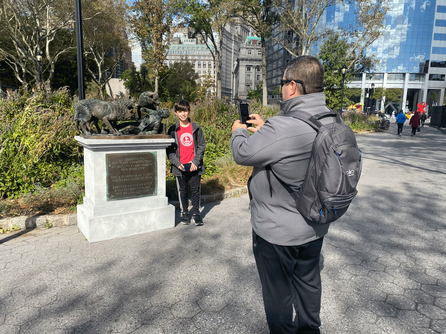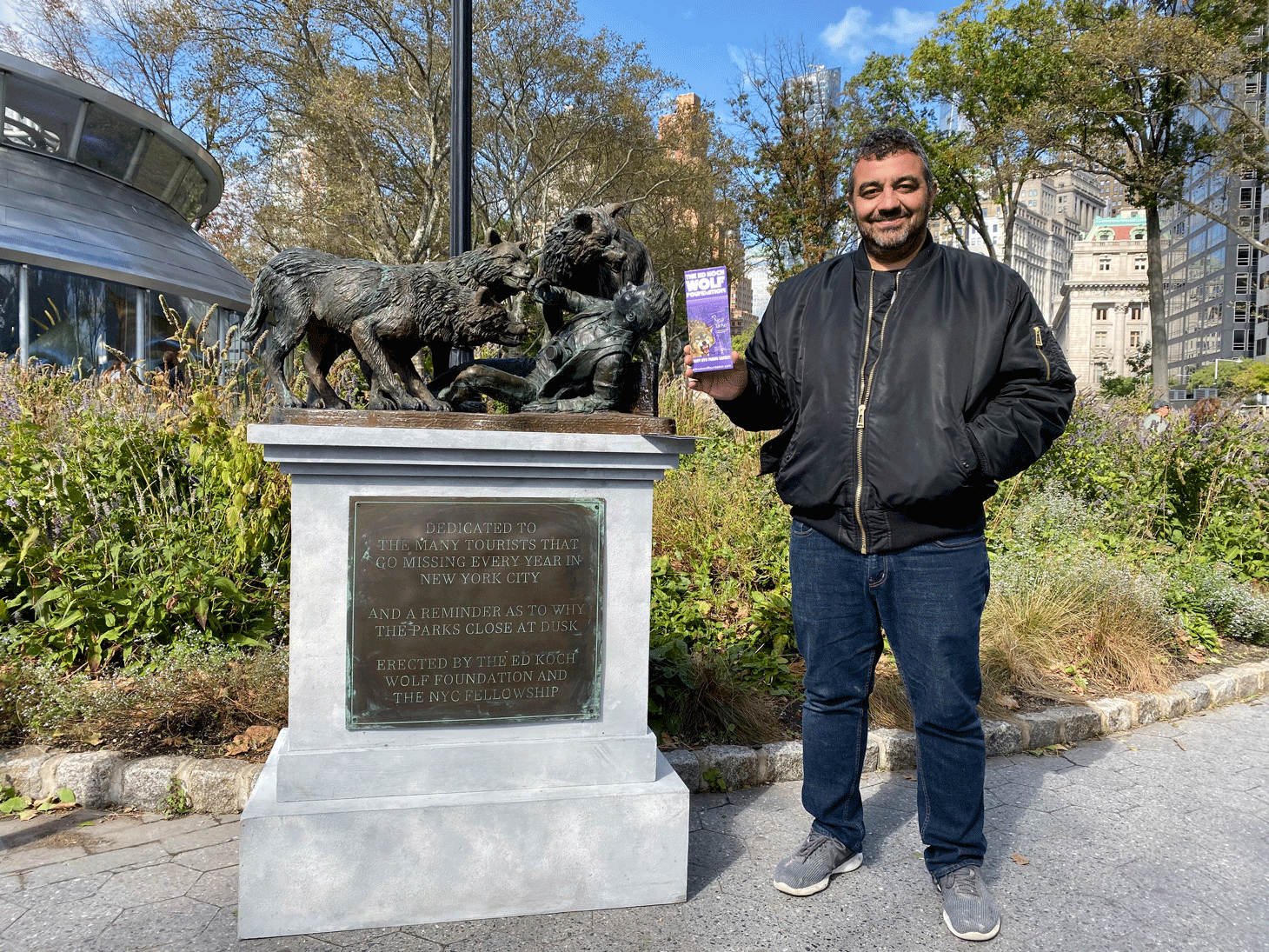 Battery Park at the southernmost tip of Manhattan is a monument-heavy site jam-packed with colossal bronzes commemorating victims of the 9/11 attacks, United States servicemen killed in World War II, immigrants, and others. But these days, a curious new monument dedicated to tourists who have purportedly lost their lives to wolf attacks in the city has become the park’s main attraction.