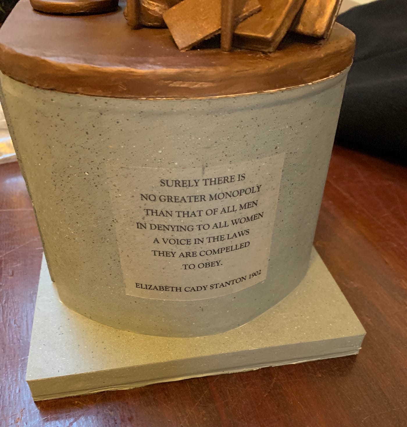 One of the inscriptions included on the revised version of the monumentAdvocates for the Anthony and Stanton monument remain largely undaunted by this chapter in history, observing that these women were still products of their time despite their progressive bent. (It should be noted, however, that there were other suffrage associations that supported the 15th Amendment, including Boston’s American Woman Suffrage Association led by the former abolitionist Lucy Stone.)