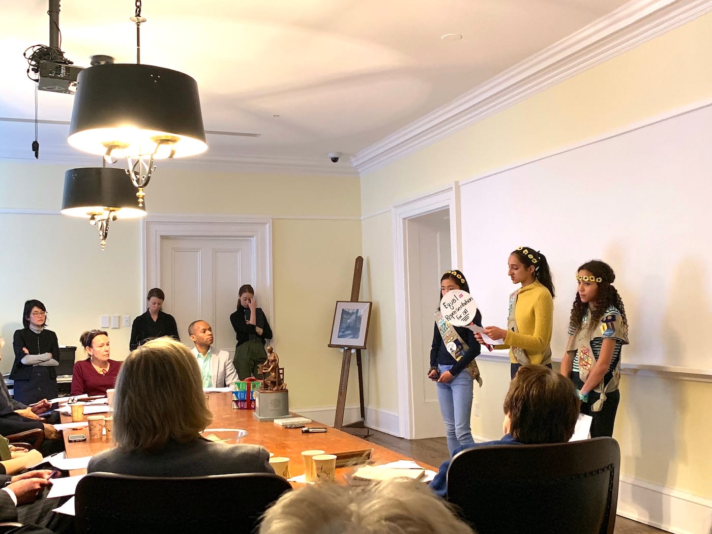“We have literally grown up fighting for this fight,” said three Girl Scouts who delivered their testimony to the commission in favor of the monument. “Wearing sunflowers in our hair, we have engaged with parkgoers for the past three years.”