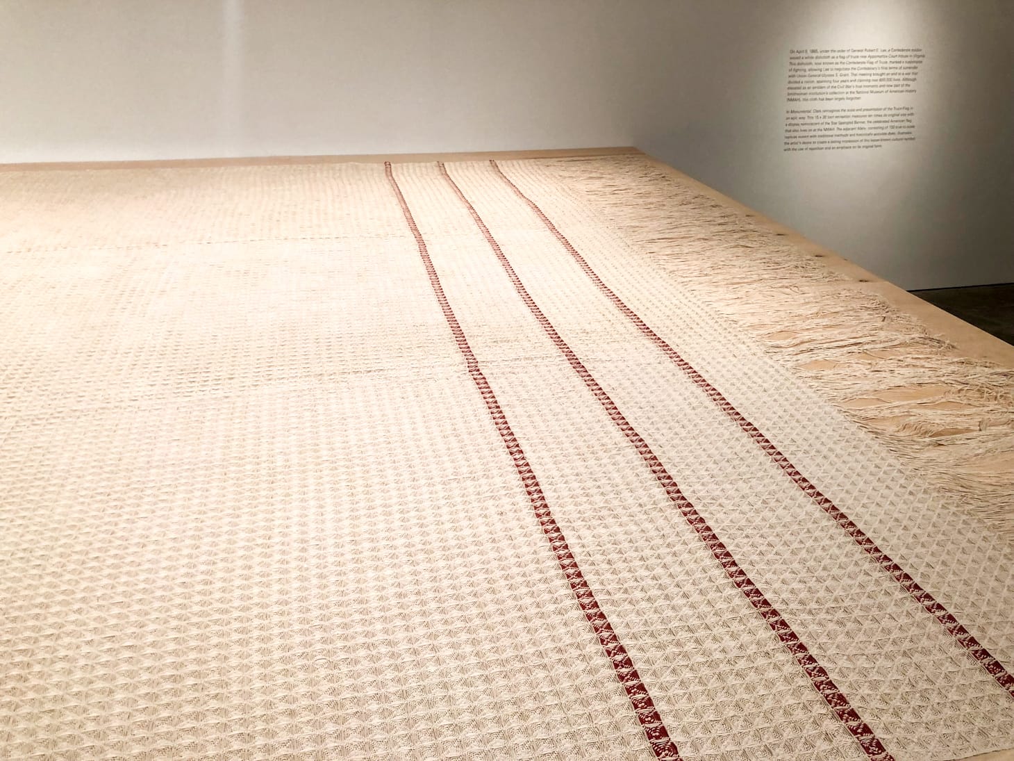 The artist made her first truce flag in her Richmond studio, the very same place where the Civil War’s end was brokered. This shifted her practice from unraveling a sordid history, to weaving an auspicious future.