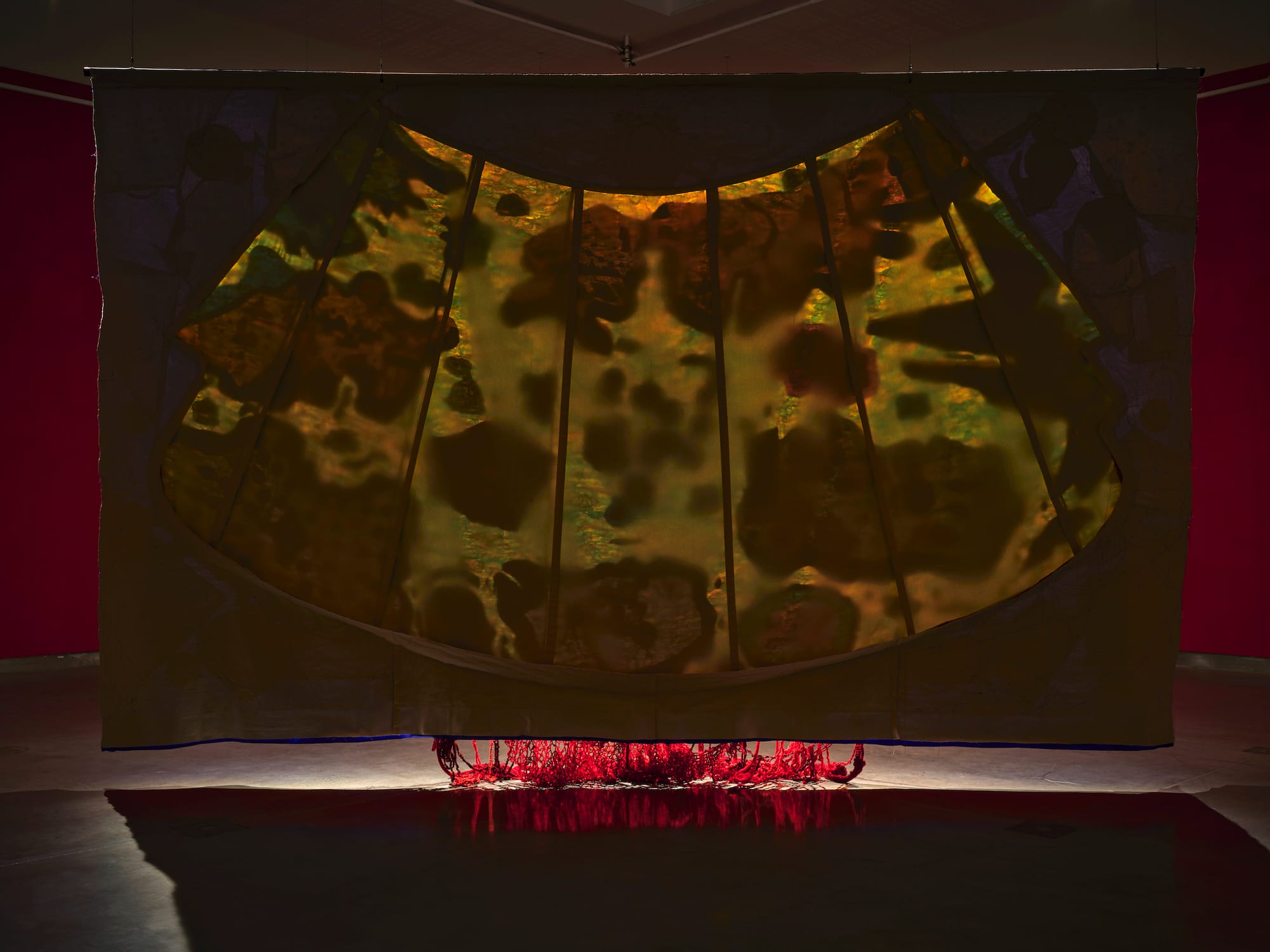 DUBLIN — At 21 by 15 feet, Rachel Fallon’s and Alice Maher’s “monumental textile sculpture,” titled “The Map,” is the only object in the room, cutting diagonally across Rua Red Gallery’s main space. “It was important that it wasn’t a wall hanging, that it had some corporality, that you had to negotiate the space,” shared Fallon during the press viewing. If “monumental” immediately evokes scale, Fallon and Maher’s piece also recalls the other art historical meaning of the term: how the stained glasswork of a cathedral is monumental in function, both in that the windows are part of the building’s structure, and that they are intended to be read, from the ground heavenwards. “The Map” is a window to Irish history too often glossed over — that of women.