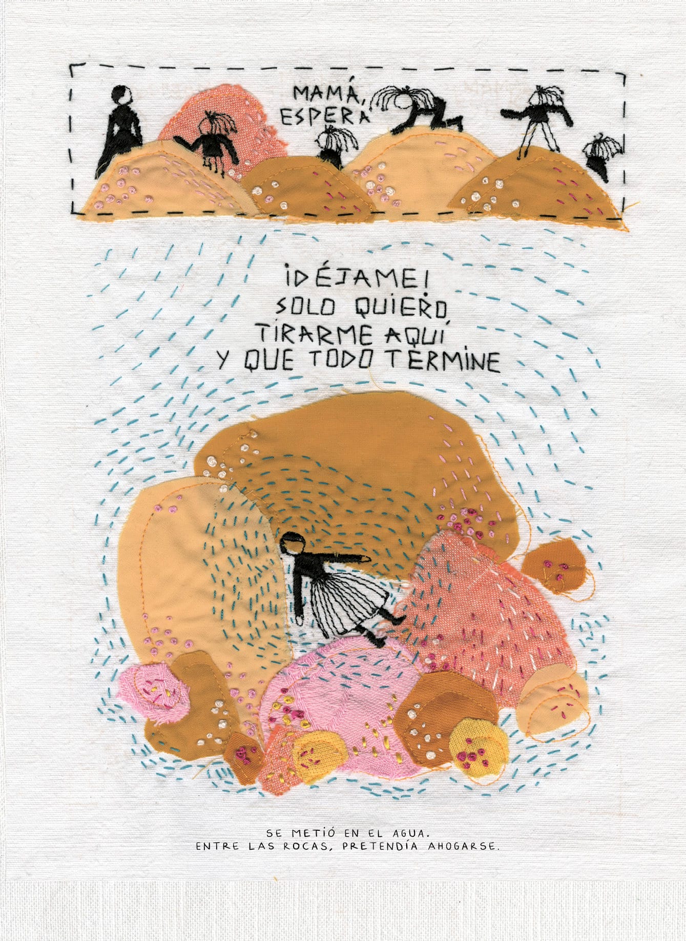 Both authors were recognized for works that shed light on women’s often-overlooked stories: Penyas on the generation of women who survived the Spanish Civil War and the sexism that followed it, and Lema on the complexity of mental illness, family life, and healing. El Cuerpo de Cristo tells a story we don’t often get to hear, and does so in the unconventional, highly personal language of ink and thread. As with Vera in the story, Lema learned to sew from her mother, who in turn learned it from her own mother. Though often labeled “women’s work,” sewing is both an art and an essential tool for mending, repairing, and embellishing. In this way, it’s a meditative form of caretaking that extends the life of something held dear, while offering its creator the space for mental peace.