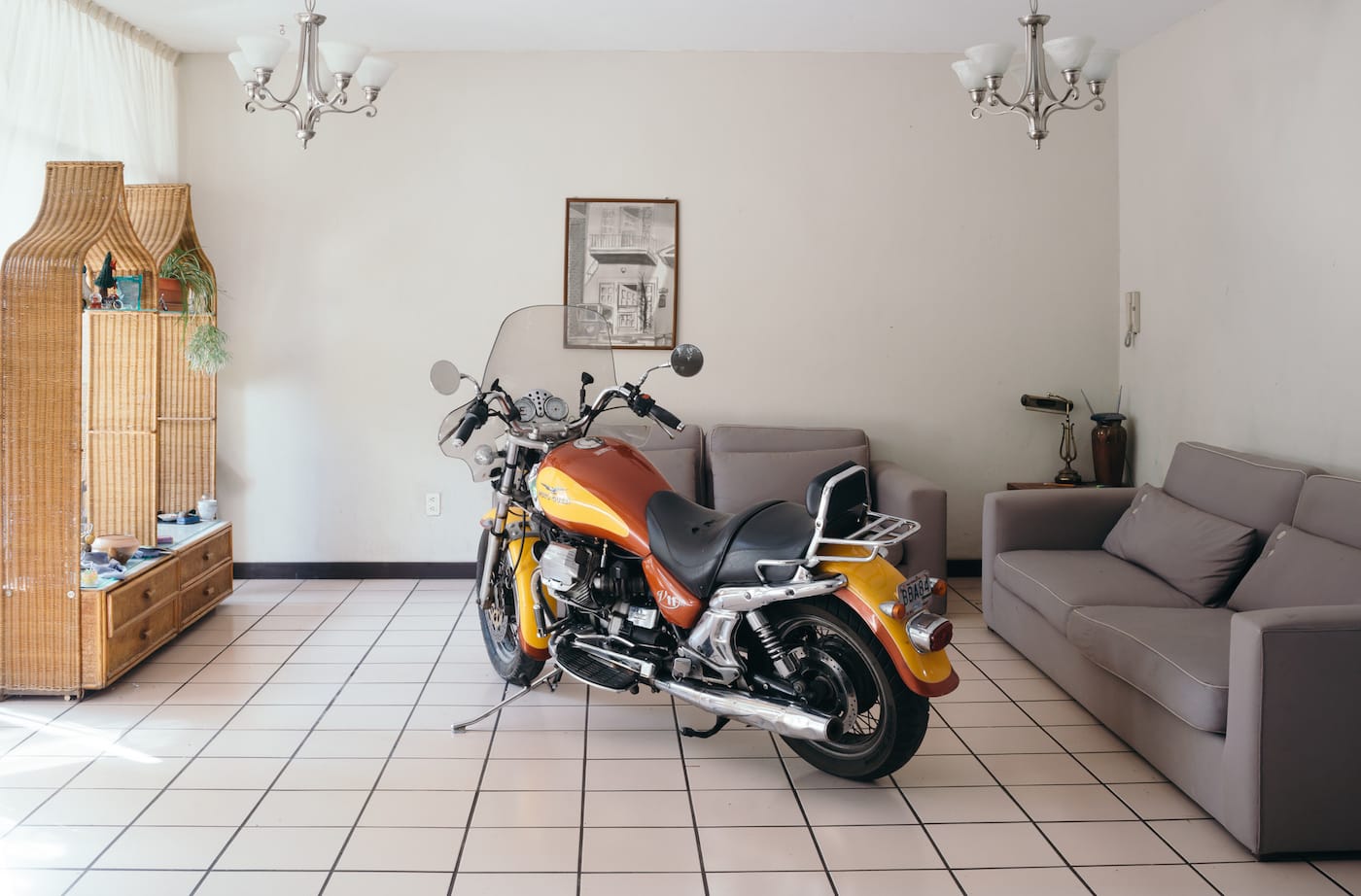 To help fulfill her psychological and physical journey, Argote has enlisted a crew of motorcycle-riding artists and collaborators including Alexandra Grant, Bill Kelley Jr., and Anuradha Vikram. In a Griffith Park parking lot, she will assemble a course based on the overlapping floor plans of her Pico-Union childhood home and her father’s house in Guadalajara, on which they will stage a choreographed rally, using microphones in their helmets to tell their own stories about domesticity and the freedom of the road. After training with these collaborators, Argote plans to end her residency by reversing the journey her father took 20 years ago when he left LA to start a new life in Mexico, riding the same Moto Guzzi California V11 EV motorcycle back from Guadalajara to LA.