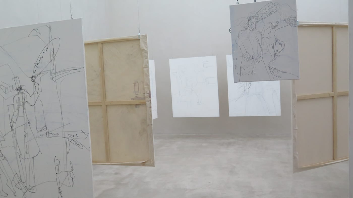 The real impact of the Kolumba lies in impeccable museology, with an effective mix of spaces in which there is a lot to look at, like rooms 16 and 17, in which Chris Newman’s 2016 installation “Relief Behavior Option” fills the galleries with a crowded group of paintings hanging from the ceiling, and spaces containing only two or three works, such as the south tower and its breathtaking triptych. Newman’s heavy line-work paintings, which look like sketches in a diary, indict his everyday life without any glamorization, recreating the architecture of his small Berlin apartment and immersing the viewer into a loose and sketchy personal narrative. The installation was created specifically for the space at the invitation of the museum, and it is currently on loan from the artist.