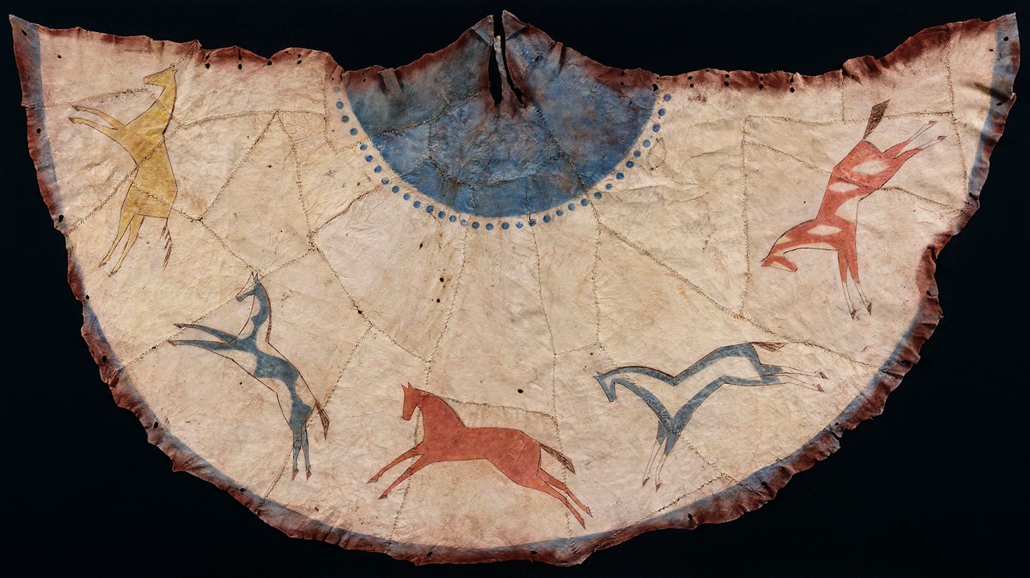 Works as diverse as pottery, Crow Ledger drawings and a model Cheyenne tipi cover are shown together with contemporary works, such as Wendy Red Star’s iconic “Four Seasons,” an ironic tetralogy of self-portraits in which the artist poses amidst emphatically kitschy Native Americana props, mocking reductive Western stereotypes of complex indigenous cultures. And Marie Watt’s “Ledger: Predator and Prey” (2015) is a contemporary politically-charged embroidered blanket mimicking a ledger-drawing, juxtaposing a soaring eagle with an American reaper drone. From the very beginning, it was important to the TMA that the old and the new be included together; says Norton-Westbrook, “we wanted to make the point that although these cultures have suffered historically though displacement and disruption, they have survived and lived through to the present day and continue to produce incredible artists.”