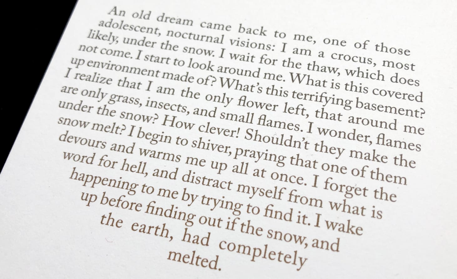 “I wasn’t that lonely little girl anymore, the only child, who invents stories in a made-up language, in the middle of the forest” writes French composer, poet, and publisher Félicia Atkinson in what she cites as the first part of a larger novel spread across several forthcoming volumes. Issued by her publishing platform and record label Shelter Press, which she collaborates on with her partner Bartolomé Sanson, A Forest Petrifies: Diamond Feedback presents Atkinson’s literary work as both an aside and a companion to her music practice which has developed over the last half decade, acting as a point of departure for her lyrics and recent records and exhibitions. Leaning into the imaginative possibility of text, the novel grafts a poetic, discursive dialogue that fills in the detailed sonic worlds present in her recent album The Flower and the Vessel.