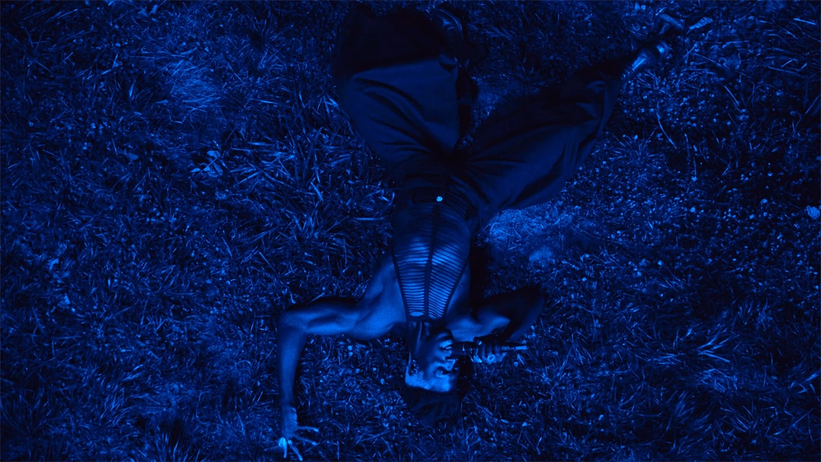 The film, much like the album grae, begins with lighter, more energized tracks, here accompanied by choreography. It opens with a tight shot of a lone butterfly, which segues into Sumney sprinting in a field that leads to the stage, where he performs “Insula.” His lyrics challenge audiences to think about solitude, loneliness, and otherness, while the manic synths contained in “Virile” and “Conveyor” inspire movement and dance as a ritual — the music has a cathartic feel that culminates in Sumney’s distorted vocals as he opine on otherness as a tool of power: “Dissatisfaction seems like the natural byproduct of identification. I truly believe that people who define you control you.”