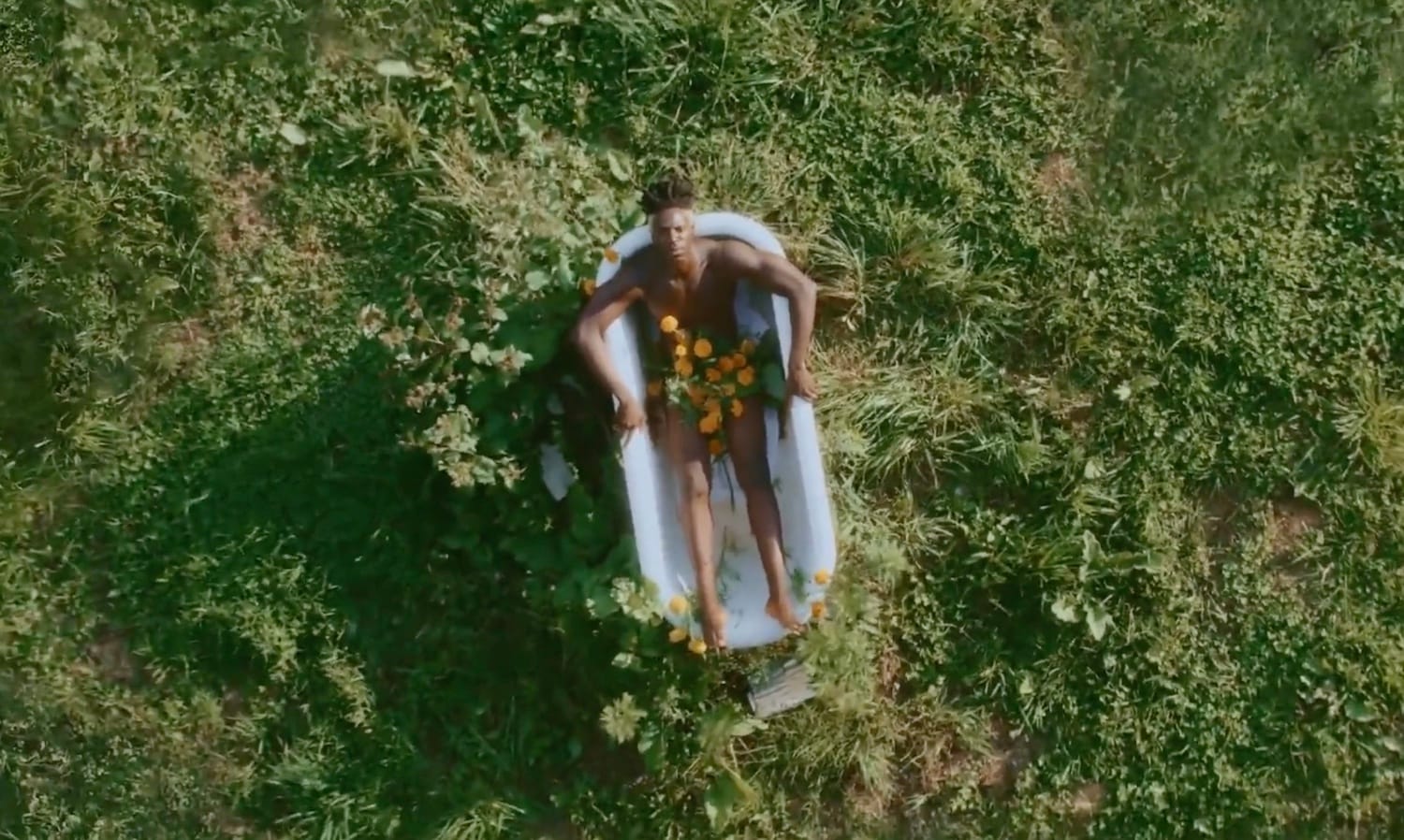The live performance includes 14 songs performed by Sumney, four bandmates, and a three-piece horn section. There is no audience — it’s just the musicians and the luscious North Carolina Appalachian mountains near Asheville, which Sumney has called home since 2018. The band’s sparse stage is punctuated with elaborate accents: a craggy tree branch festooned with local flora is fashioned into a mic stand that appears to grow from the earth up through the stage. It provides a proper perch from which Sumney croons his highly emotive lyrics. Throughout the performance aesthetic and sonic transitions set the tone, which toggles between light and darkness, day and night. Like Sumney’s live sets, the film “starts off a little mysterious and launches into high energy before going into the more cerebral, esoteric, deep emotional places,” he says, “but ‘Insula’ introduces the theme [of isolation] of the record.” The philosophical underpinnings of Blackalachia were inspired by writer Taiye Selasi, who also shares a writing credit on “Insula.” Her opening prose dissects the theme and reveals the etymological roots of the title. “Isolation comes from ‘insula,’ which means 'island'. We are introducing the concept of isolation and the feeling of being islanded,” says Sumney.
