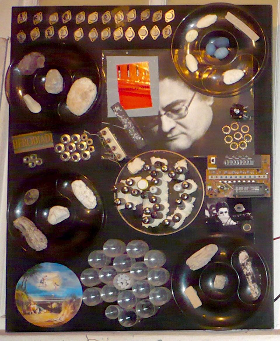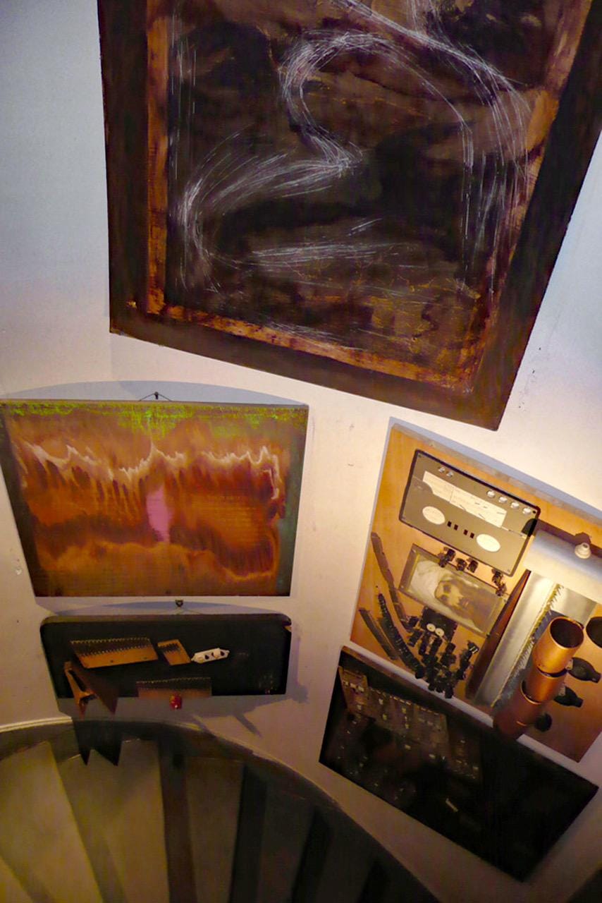 Composer Pierre Henry's home studio in Paris has been sold. Until recently, the walls were still covered with musique concrète assemblage sculptures and post-cubist bas-reliefs of printed circuit boards.