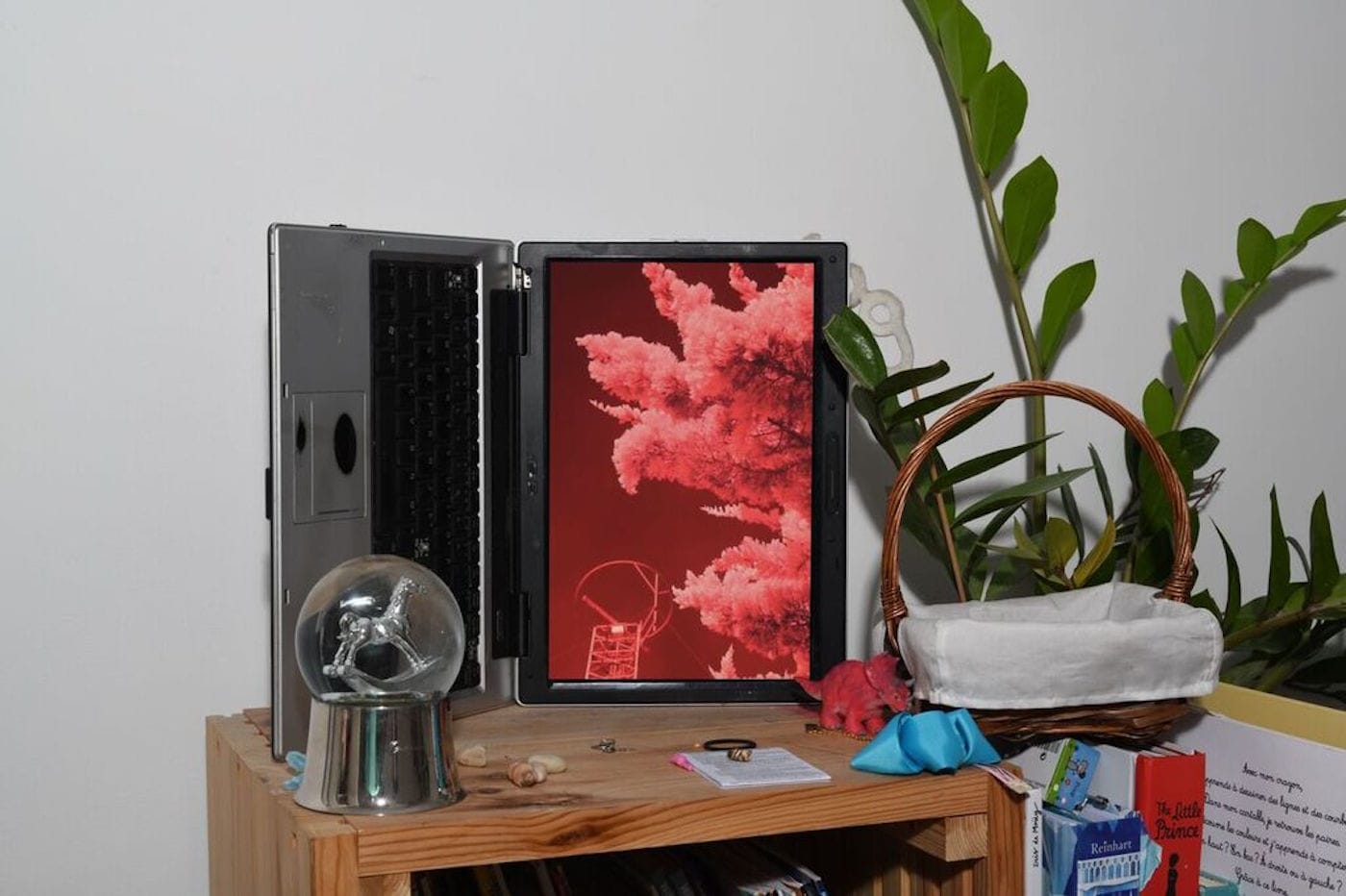 ER: Right, or how it interacts with your computer or phone when different notifications pop up. When I leave my notifications on, it plays with the landscape of the work and reminds me that this is a single moment in time. When and why I swipe notifications away or check them — when does that screen stop being a display device for art and start becoming an endless scroll through information?