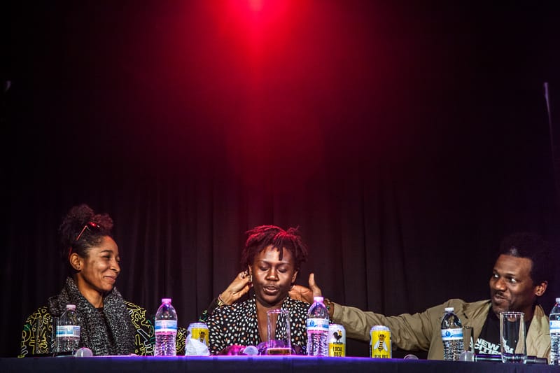 As a contrast to the more practical and site-specific presentations, many of the performers at New Cities, Future Ruins focused on imaginary utopian futures that would destroy or upend dominant social structures. Autumn Knight’s performance “L-A Consortium” (the dash is not silent) is set in the wake of an unnamed but presumably revolutionary event that has resulted in black people becoming the controlling arbiters of all cultural institutions in Texas. Knight cast her fellow performers (NCFR participants Iv Amenti, lauren woods, David Herman, and RonAmber Deloney) as a committee tasked with building a new nonprofit, donor-sponsored consortium of cultural organizations — the names of which are more conspicuously ethnically diverse compared to the usual endowed institutions one sees even nationally (e.g., Shepanique Center for Literacy, NaQuante Gallery, La shiri Center for Curatorial Studies). Knight instructed the committee members to present and react to each other’s proposals by using a prescribed set of body language — the side-eye, the lip pucker, the shoulder shake — that resulted in hilarious yet poignant moments of communication. For the space of her performance, Knight provided both ideological and visual means for subverting current cultural norms, and for imagining an alternative world in which rubbing a colleague’s “kitchen” is an officially sanctioned gesture of accord.