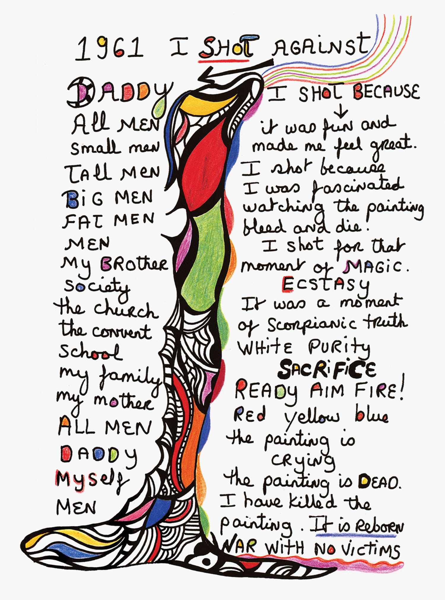 A new book on the artist features selections from Saint Phalle’s prints, doodles, letters, and diaries, arranged in roughly chronological order.