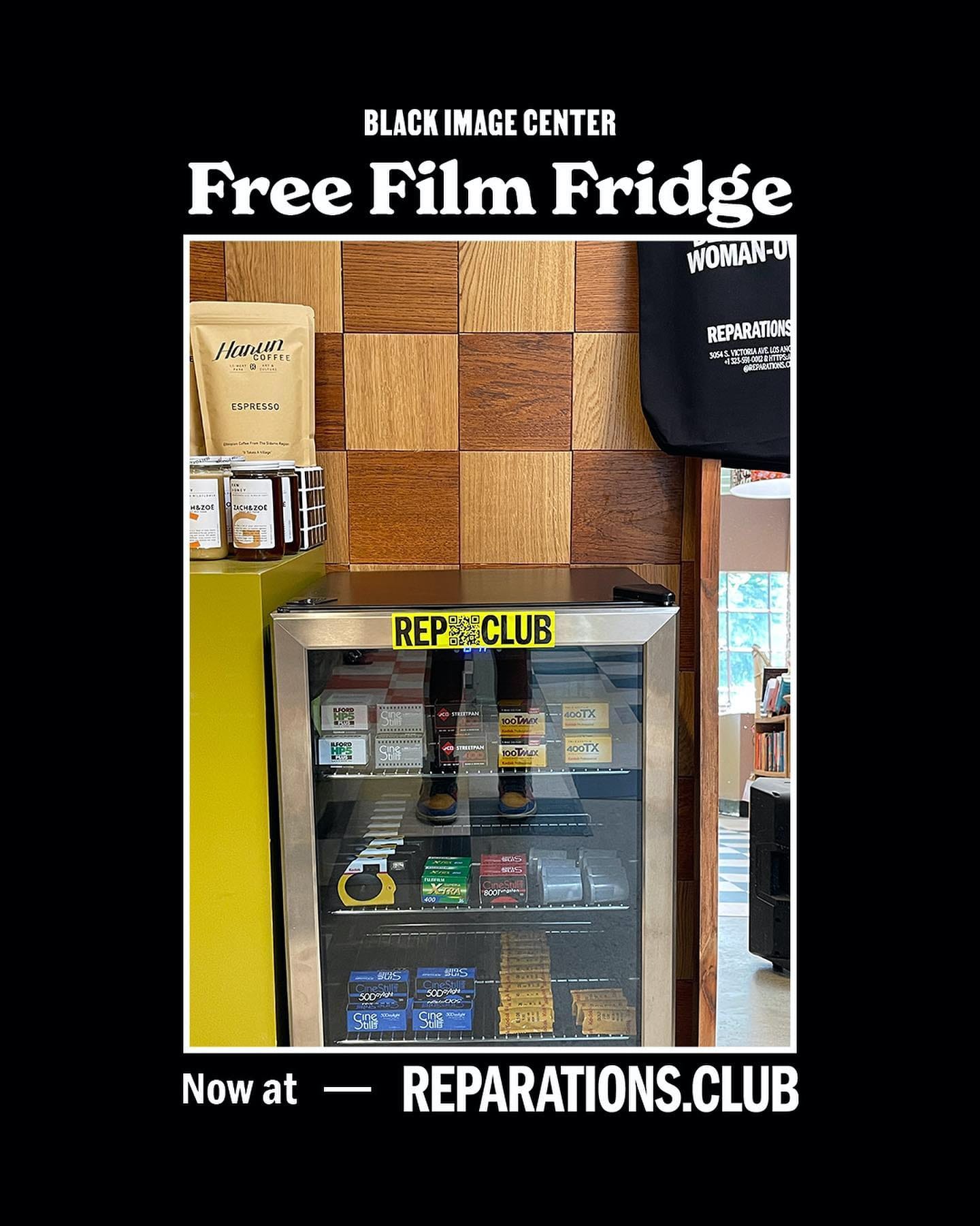 The Black Image Center also offers film refrigerators, where a constant supply of free film for community use is available. There are currently two: one at the center and another at Reparations.club, a bookstore in LA’s Mid City.