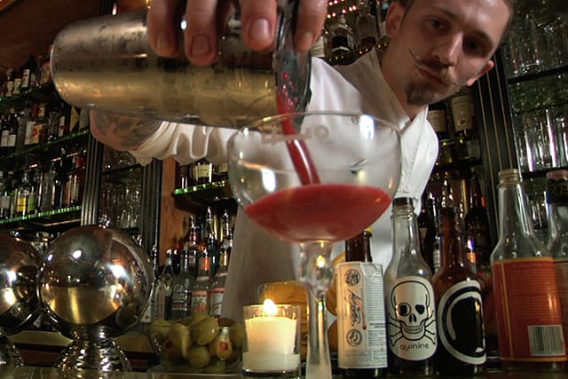 Tirola stuffs Hey Bartender with plenty of talk-to-the-camera interviews from craft cocktail advocates including Vanity Fair editor and Monkey Bar owner Graydon Carter, master bartender Dale DeGroff, Clover Club and Flatiron Lounge owner Julie Reiner to Dushan Zaric, Serbian immigrant, former rock and roller, failed car salesman, and co-owner of destination bar EO.
